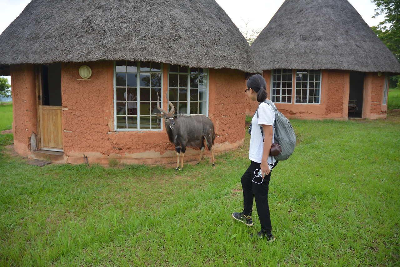 아프리카를 동행하는 순덕 언니 부부와 우리 커플 중 아침에 제일 먼저 눈을 뜨는 건 언제나 나였다. 그런데 그날은 눈을 뜨자 바깥에서 누군가의 인기척이 들렸다. 커튼을 살짝 걷어 내다보니 숙소 앞에서 식사 중이었던 사슴이었다.