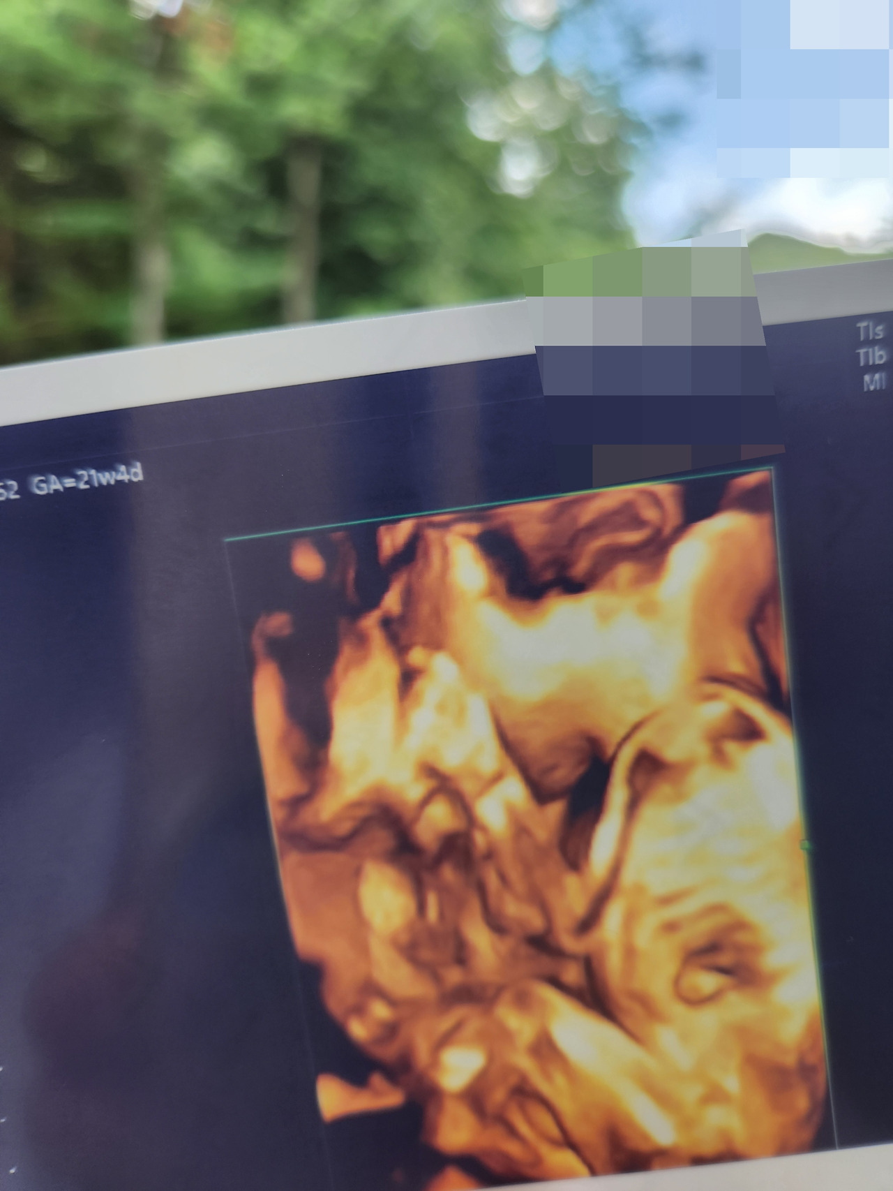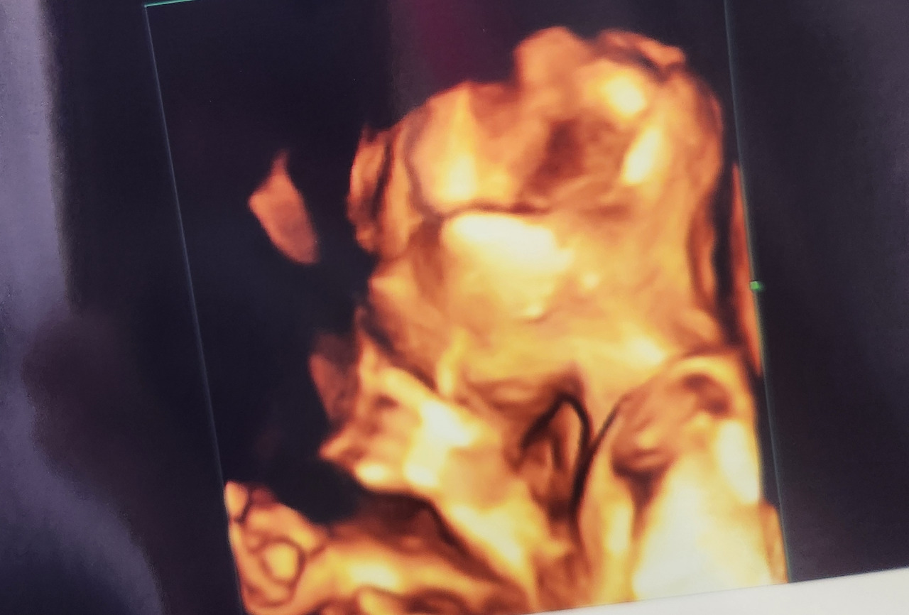 한 달 전 초음파 검사랑 마찬가지로 두 팔을 얼굴 옆에 올리고 있어서 완전 잘 보인 건 아니었지만 그래도 저번보다는 더 잘 볼 수 있었어. 호두가 입도 막 뻐끔거리고 다시 생각해도 감격스러워서 눈물이 나네. 팔도 막 움직이고 엄청 활발하게 움직이고 있었어. 선생님도 '아기가 엄청 활발하네요. 태동 많이 느껴지시겠어요.'라고 하실 정도였어.