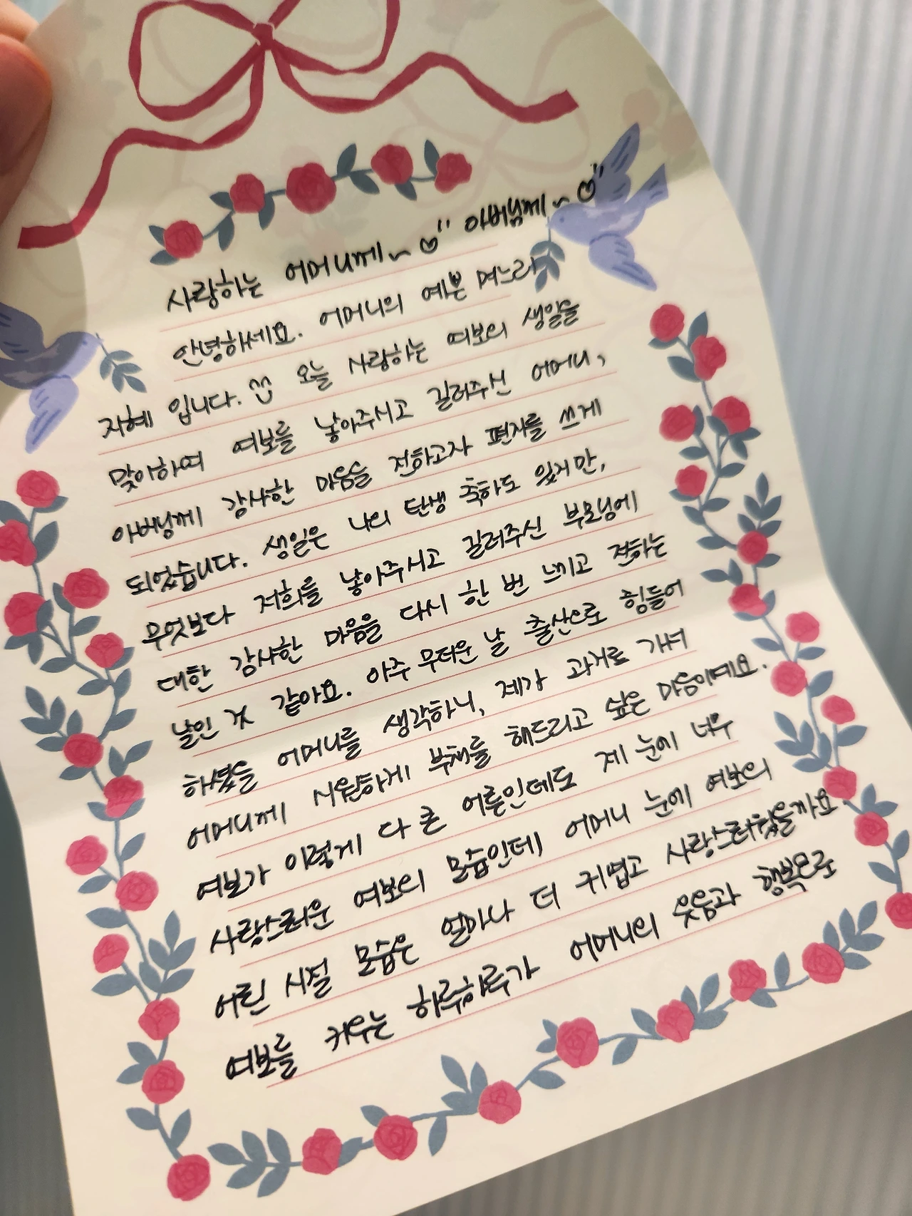 안녕하세요. 어머니의 이쁜 며느리 지혜입니다. 오늘 사랑하는 여보의 생일을 맞이하여 여보를 낳아주시고 길러주신 어머니, 아버님께 감사한 마음을 전하고자 편지를 쓰게 되었습니다.