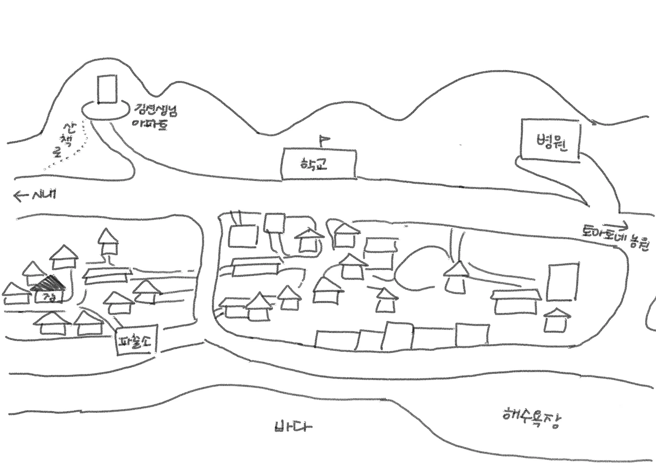 토마토는 나를 여기로 데려오자마자 뒤편에 수돗가가 있으니 날이 어두워지면 나가서 편하게 씻으라고 말해주긴 했지만 밤이 되면 꽤 춥기도 했고 굳이 몸단장을 하고 있을 이유를 찾지 못했다. 이젠 이유가 생겼으니 씻어야지. 어젯밤에 나왔다면 좀 더 마음이 편했겠지만 아직 이 쌀쌀한 바닷바람을 맞으며 어둠 속에서 씻을 용기는 나지 않았다. 낮이어도 얼음장 같은 물에 벌거벗고 몸을 맡기는 일은 유쾌하지 않지만 그래도 해라도 나니까 살 것 같다. 재빨리 샴푸로 온 몸을 문지르고 헹군 후 다시 옷을 챙겨 입었다. 토마토가 수건도 챙겨준 것 같은데 깜빡하고 그냥 나왔다. 입고 있다 보면 마르겠지. 다시 조심조심 창고 입구로 돌아오자 문 손잡이에 종이가방이 하나 걸려있었다. 안을 열어보니 마스크 하나와 챙모자 하나, 그리고 초코바 네 개가 들어 있었다. 고개를 들어 주변을 둘러보았지만 아무도 없었다. 가기 전에 제대로 인사를 하고 싶었는데. 다시 창고 안으로 들어가 소파 위에 펼쳐져 있던 이불과 패딩, 쓰레기들을 나름대로 정리하고 마스크와 모자를 쓴 후 초코바와 핸드폰을 외투 주머니에 집어넣었다. 마지막으로 주변을 천천히 둘러본 후 다시 밖으로 나와 집 쪽을 돌아보지 않고 큰길 방향으로 걸어갔다. 스탠드 조명은 끄지 않고 나왔다.