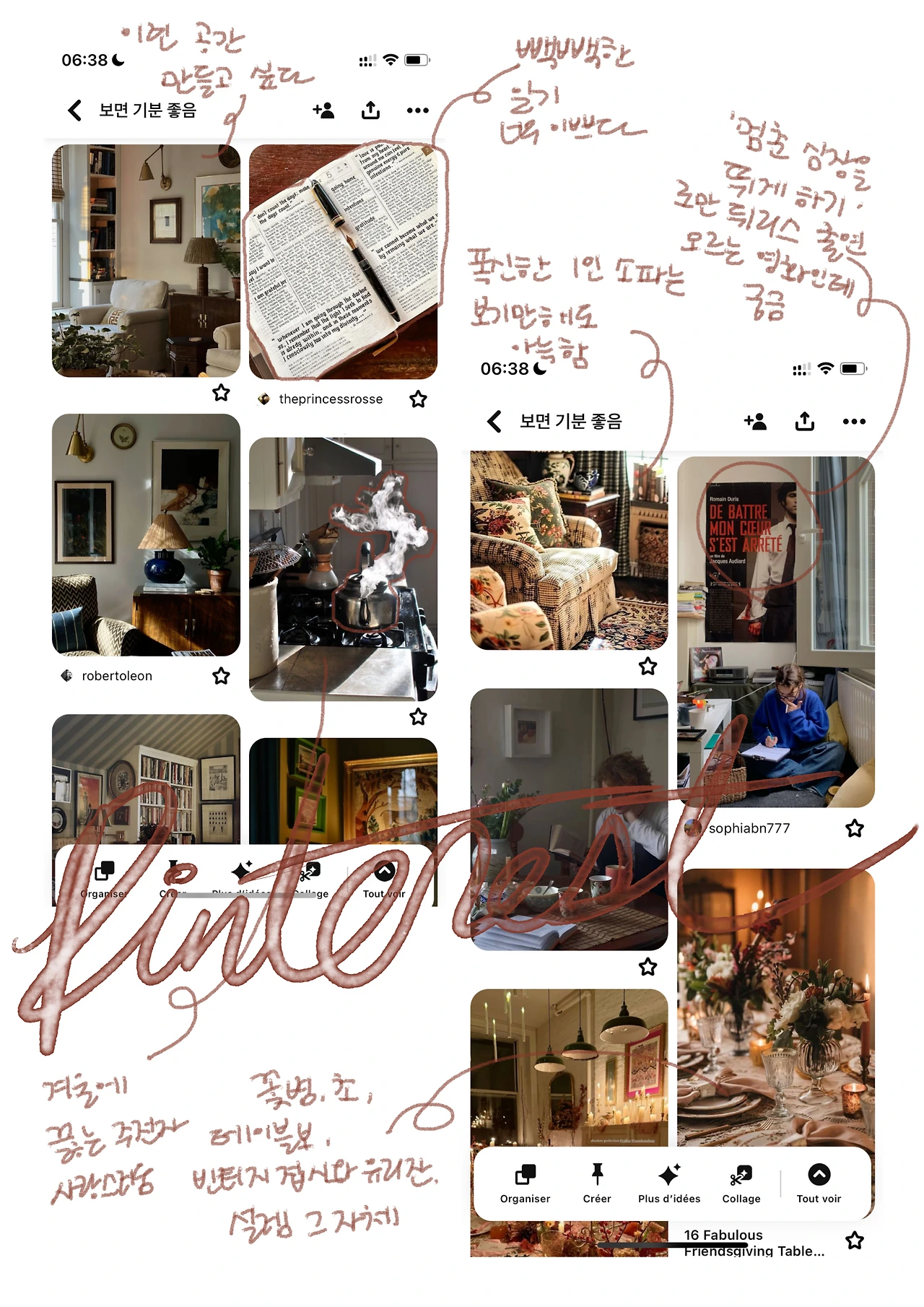 핀터레스트를 취향 수집의 용도로 사용한 지는 오래되었다. 7-8년 정도 되었을 것이다. 조용한 아름다움이 가득한 곳이라는 인상을 받고 한동안 빠져 지냈었다. 가게를 준비하면서도 핀터레스트의 도움을 많이 받았다. 인테리어와 소품, 자잘한 디자인 요소까지 손님들이나 지인들이 어떻게 이런 생각이나 감각을 키웠냐고 많이 물어봐 주신다. 그때마다 핀터레스트가 떠올랐다. 유럽에 오래 살며 몸에 익힌 감각도 분명 크지만, 핀터레스트라는 수집 기록이 모여있지 않았다면 단기간에 수많은 결정을 해야 했던 가게 준비 기간에 모두 활용하긴 어려웠을 것이다.