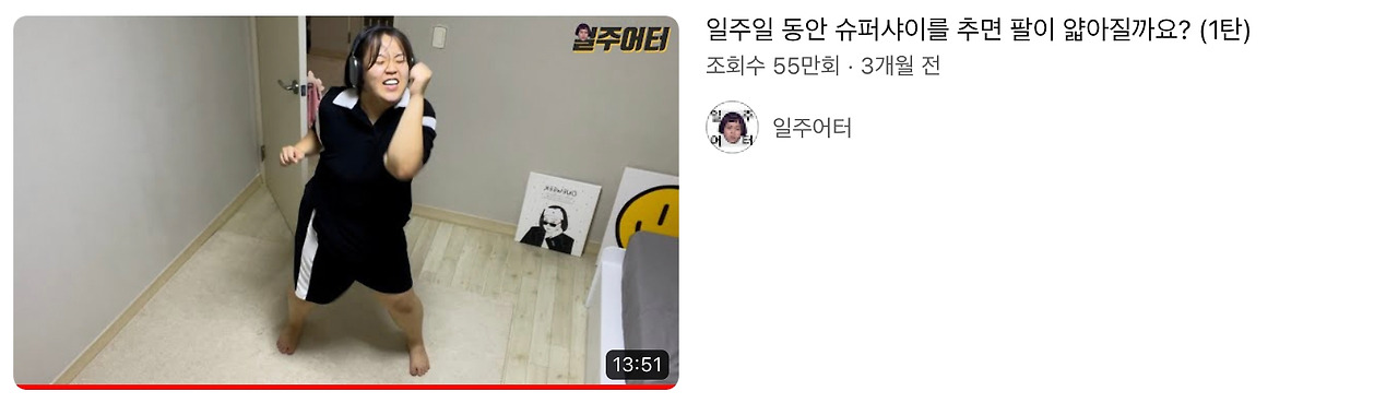 내가 처음 낚인 영상 제목은 <일주일 동안 슈퍼 샤이를 추면 팔뚝이 얇아질까요?>였다.