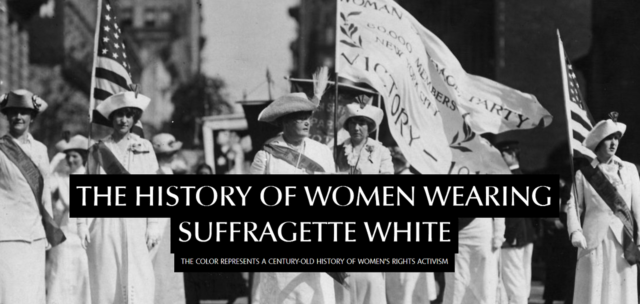 여성운동을 상징하는 흰 색 정장. 1900년대 여성 선거권을 쟁취하기 위해 여성들이 시위에 나섰다. 소위 Suffrage movement라고 불리우는 이 운동에서, 여성들은 너무 극단적인 주장을 하는 것으로 비치지 않기 위해 위아래로 흰 정장을 입었다. 남성들에 지나치게 위협적으로 보이지 않으면서도 원하는 바를 관철하기 위해서였다.