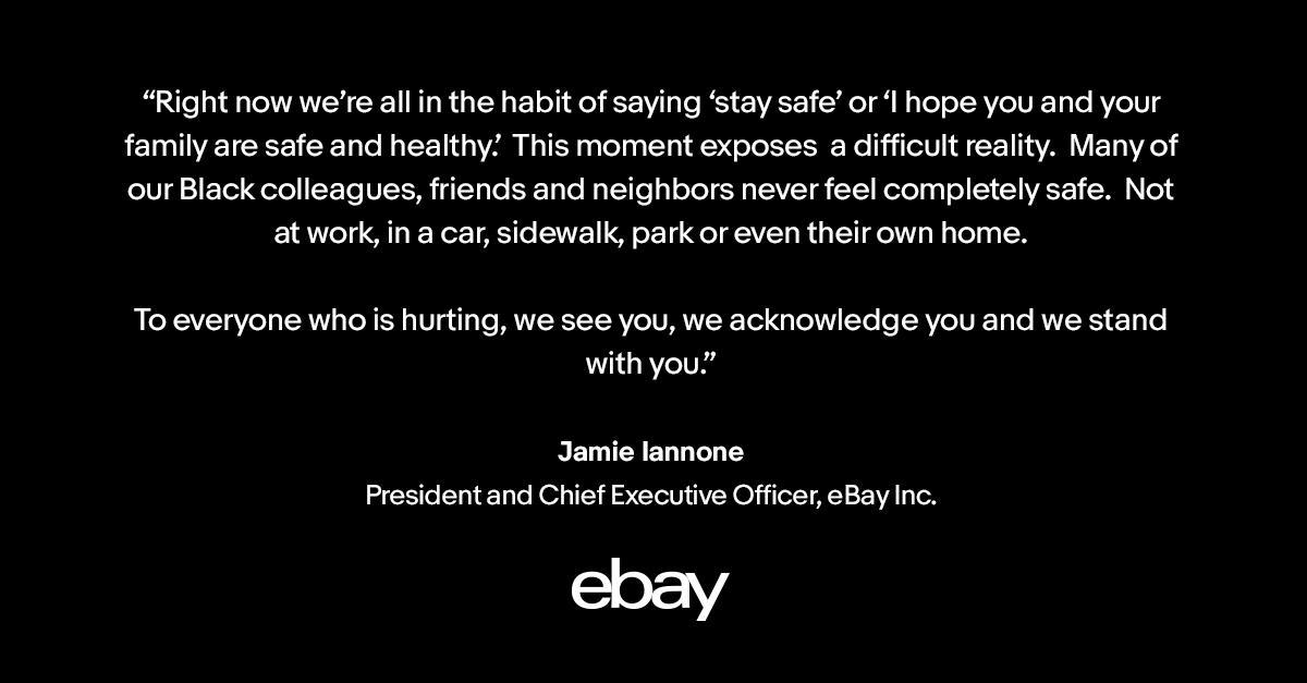 복잡하고도 힘든 시기입니다. 앞이 잘 보이지 않습니다. 하지만 정의와 인종 평등이라는 가치를 함께 지켜 나갑시다. 이베이의 핵심 가치를 마음에 두고 임파워먼트(empowerment)를 지속해 나갑시다. 그게 바로 이베이의 모습이었고, 앞으로도 우리 이베이의 모습일 것입니다.(That’s who we have always been. It’s who we will always be)"