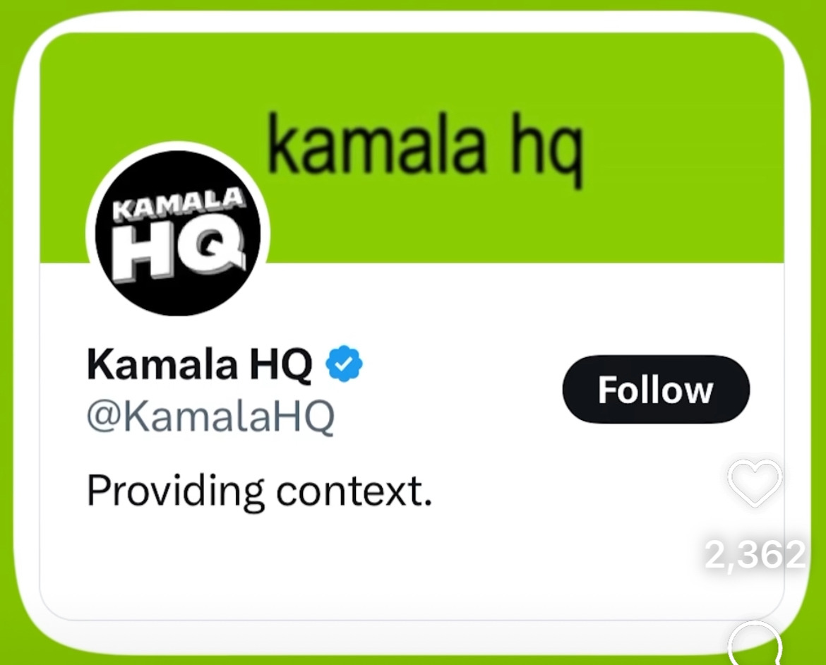 해리스 선거본부도 재빠르게 대응했다. 해리스 부통령의 X 계정 대문은 'Kamala HQ'란 라임색 계정의 이미지와 찰리XCX의 앨범 폰트로 신속하게 바뀌었다.