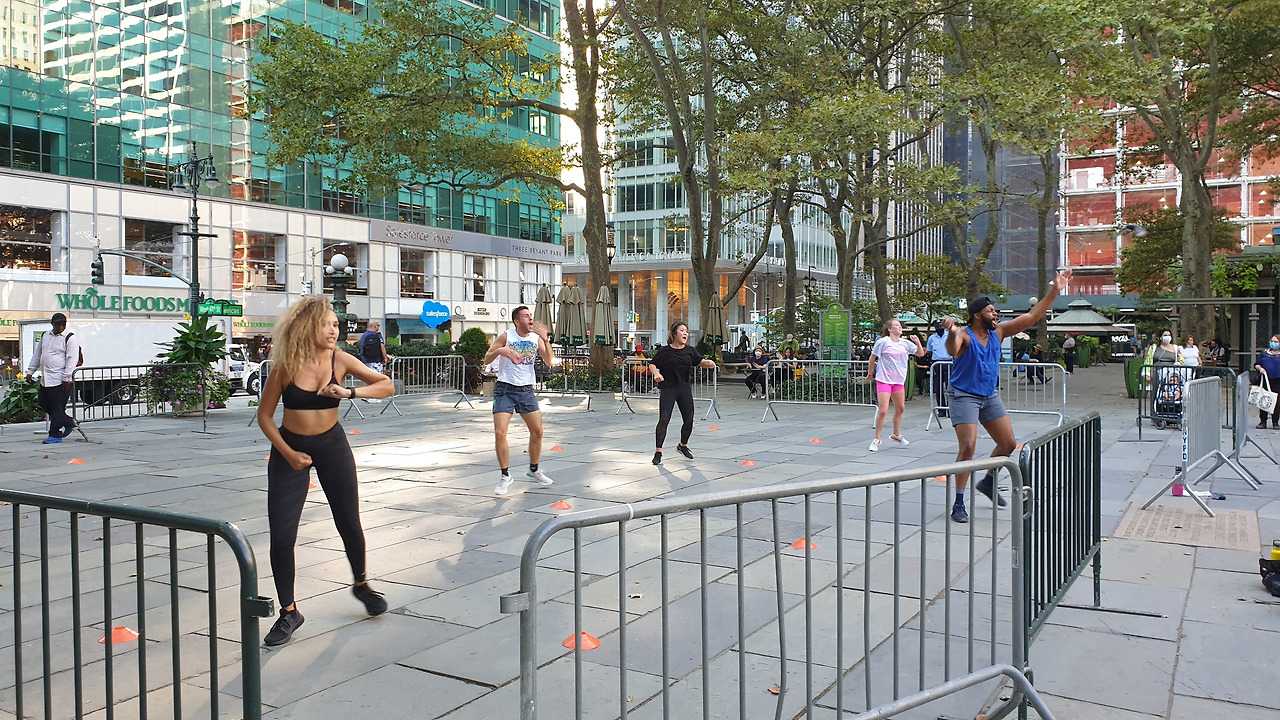 브라이언트 파크에서 열린 카디오 댄스 수업트