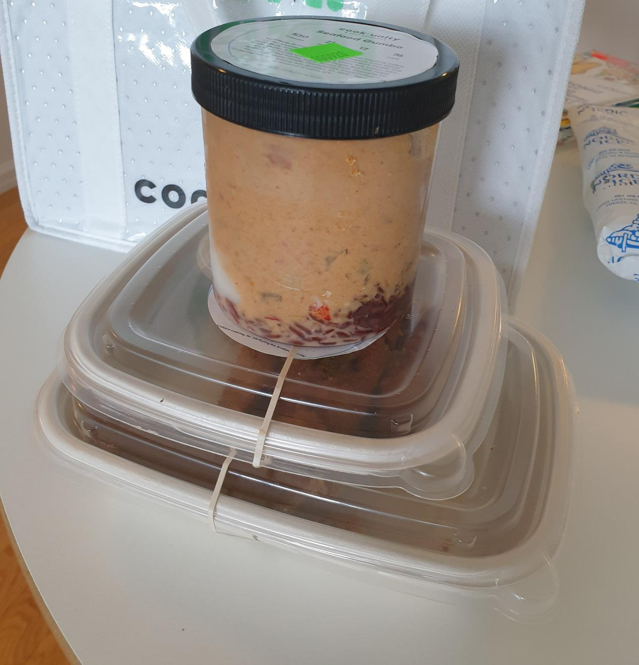 오후 4시 무렵, 집으로 음식이 배달됐다. 1인분만 주문했는데 쿠팡 신선식품 새벽배송 보냉가방만한 게 와서 우와! 많이 보내줬나! 잠시 신났으나 열어보고 실망했다. 음식은 애피타이저와 메인, 디저트 3개이고, 그보다 부피가 큰 무지막지한 아이스팩이 들어 있었다.