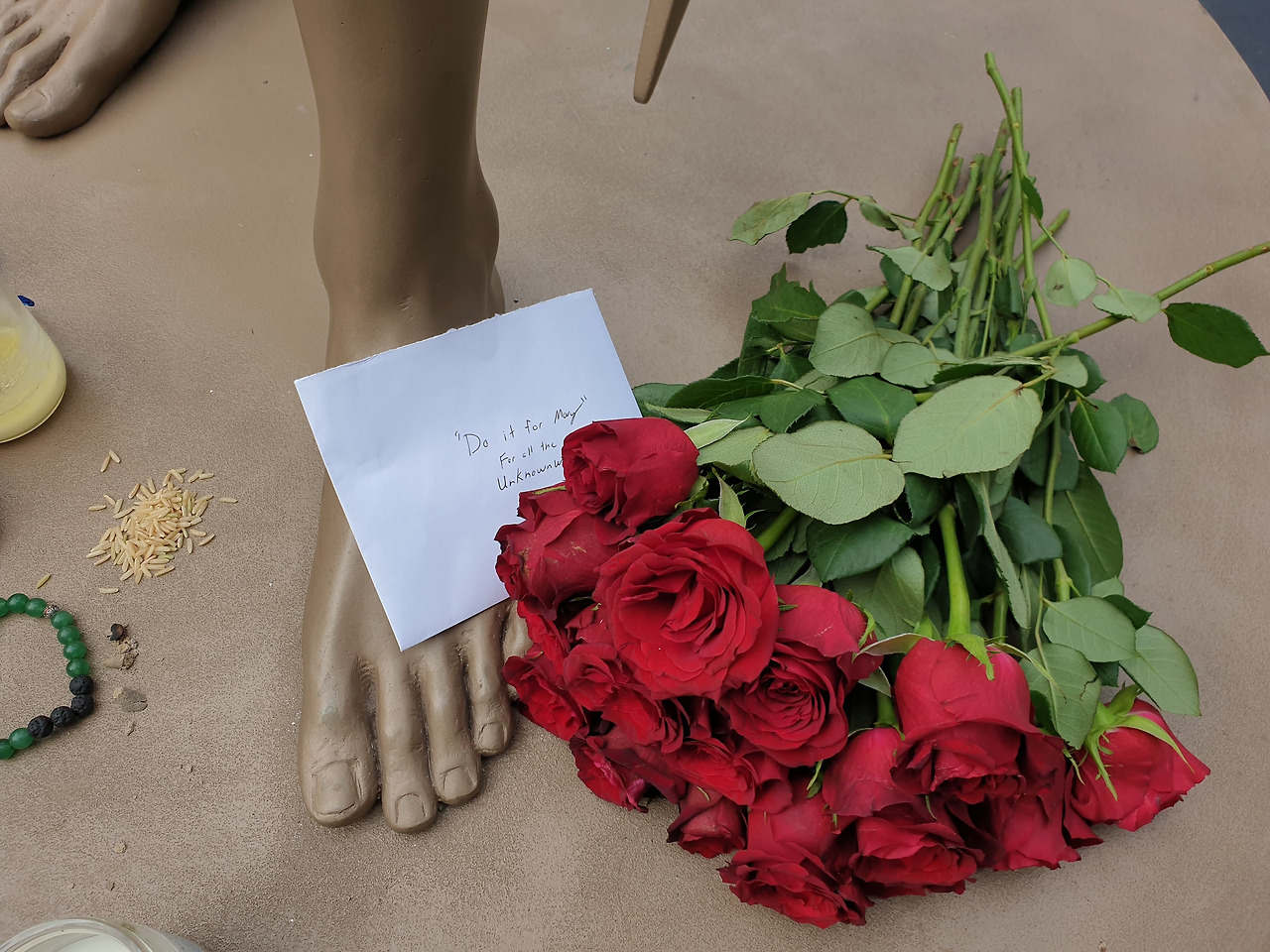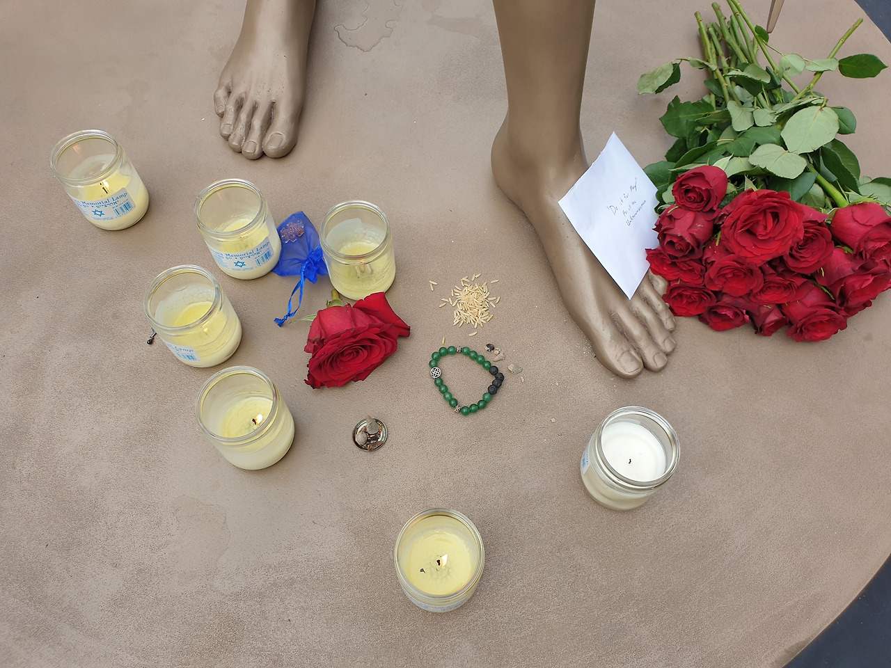 메두사 동상은 10월 13일 공개됐다. 내가 찾아간 날은 그로부터 일주일 후였는데, 벌써 많은 사람들이 이 동상을 보러 온 것 같았다. 메두사의 발밑에는 장미꽃과 향초, 쌀, 묵주, 그리고 편지가 놓여 있었다. 편지 봉투에는 “메리를 위해 해 주세요, 모든 알려지지 않은 여성을 위해”라고 쓰여 있었다. 어딘가에 털어놓고 싶고, 위로와 응원을 받고 싶은 이야기가 메두사 발밑에 모여 있었다.