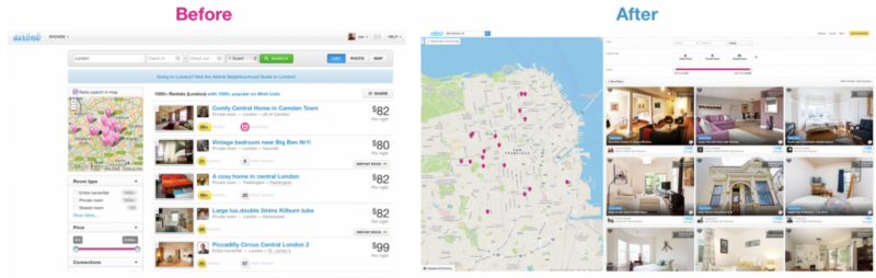 실험이 주는 이점 중 하나는 성공은 물론 실패에서도 똑같이 배우고 성장할 수 있다는 것이다. 다음은 airbnb의 검색 화면 전면 개편에 대한 실험 스토리이다.