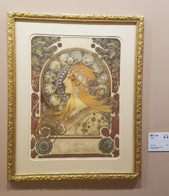 전시회를 자주 다니면서 생긴 습관이 있다. 바로 기념품 한 두 개는 꼭 사게 된다. 무하의 전시에서 내가 가져온 건 두 가지. 사계절 시리즈에서 봄을 담은 다이어리와 황도 12궁 탁상용 액자다. 오늘 아침 사무실 책상 한쪽에 기념품들을 올려놓고 전날 느낀 감성을 다시금 떠올려 봤다.