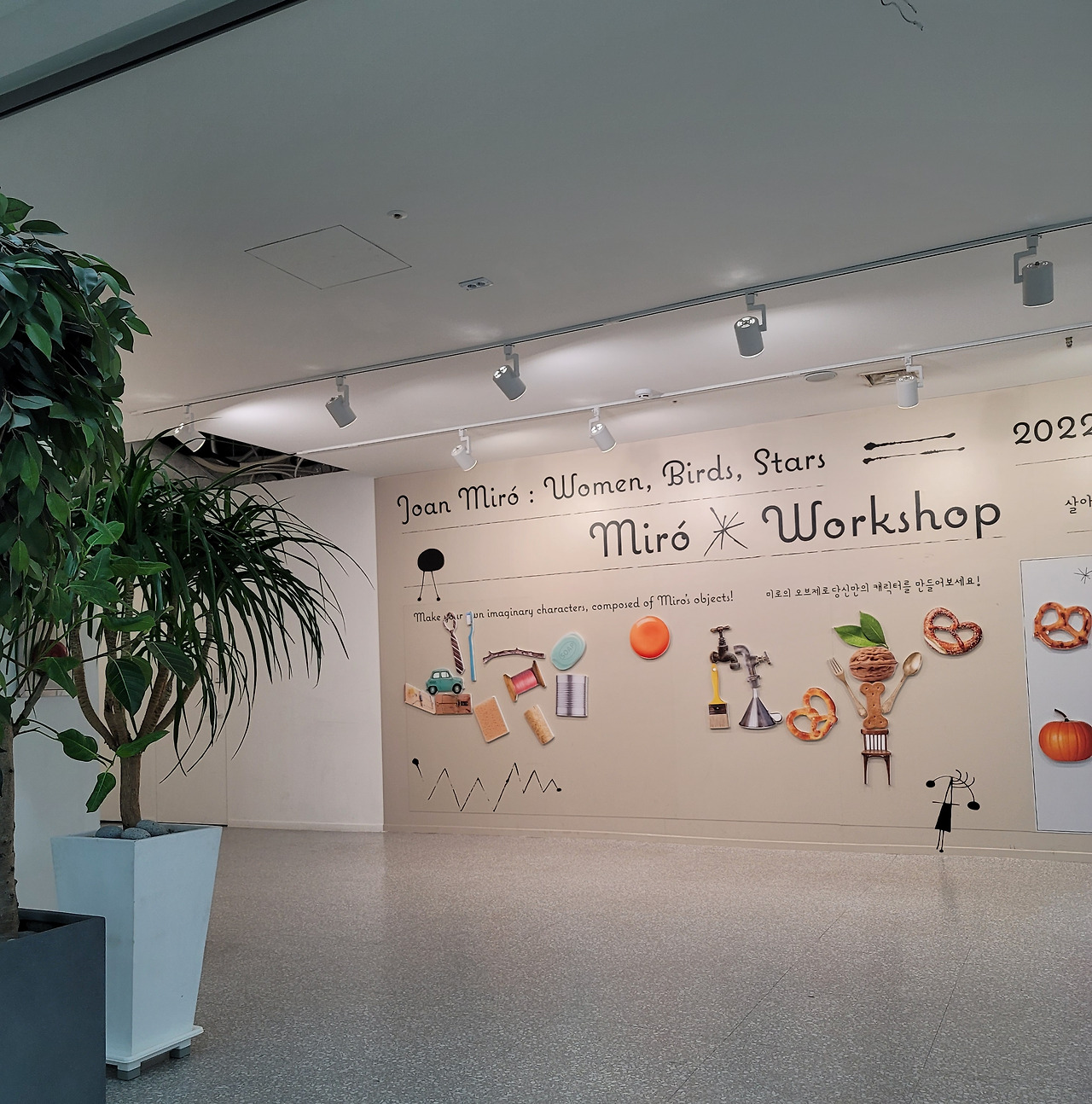 그렇게 단정한 입구를 구경하고 로비로 돌아왔다. 매번 올때마다 아이들의 재잘거림이 가득했던 전시관 입구는 오늘따라 무척 한산하다. 적막을 잠시나마 즐기며 로비 한편에 걸린 작품을 감상했다.
