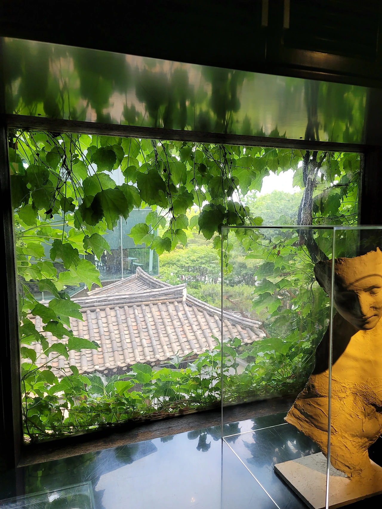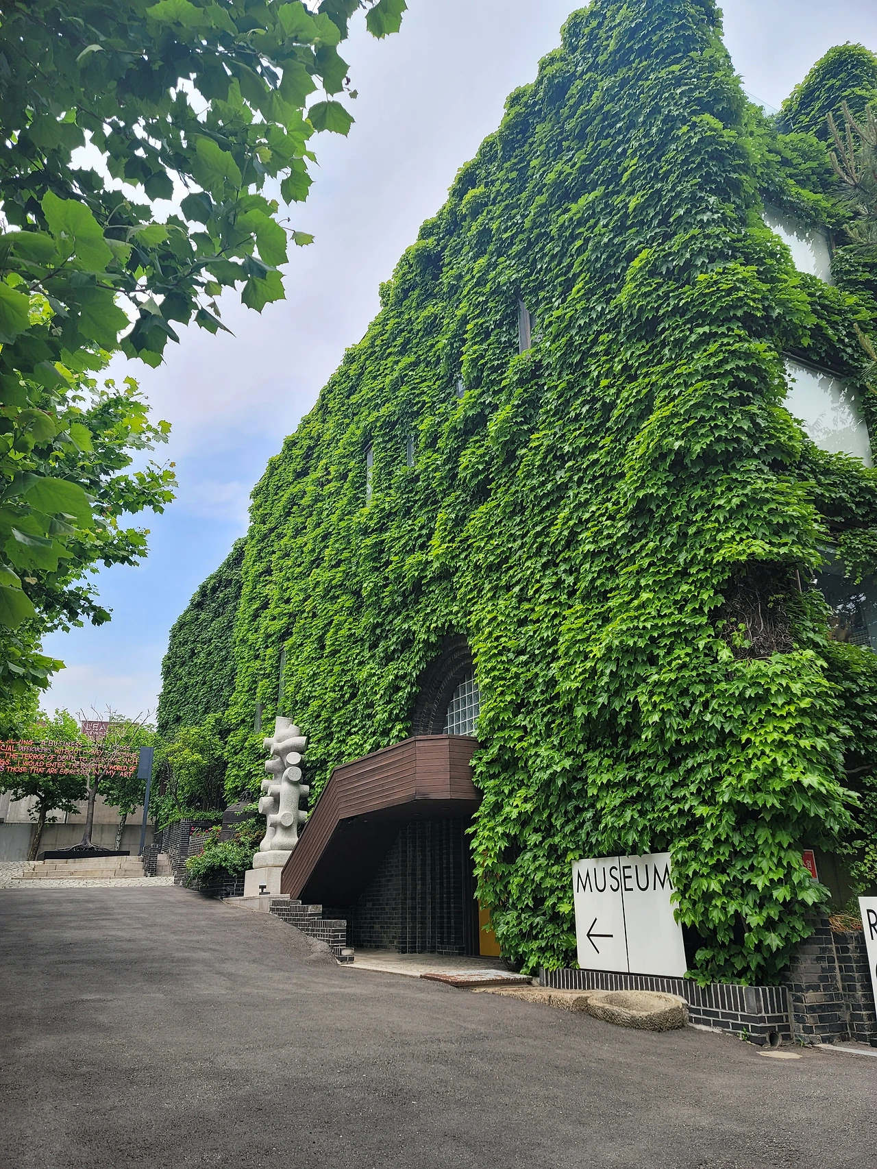 무엇보다 5월의 밝은 햇살을 온몸으로 다 빨아듯이듯 우뚝 서있는 아라리오 뮤지엄의 외관은 우리나라 건축사에서 의미있는 디자인도 볼만했지만. 미술관 곳곳에 스민 오래된 예술품들의 묵직한 향기가 무성한 담쟁이 넝쿨을 타고 하늘로 우주로 연결되어 있는 듯 했다. 그 바로 앞에서 나는 뭔가 숨통이 '탁' 트이는 느낌을 받았다.