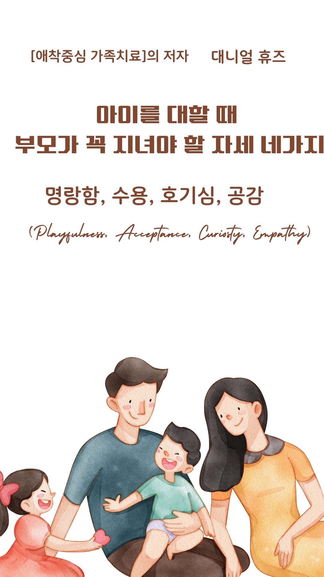 [애착중심 가족치료]의 저자 대니얼 휴즈는 아이를 대할 때 부모가 꼭 지녀야 할 자세 네 가지를 강조합니다.