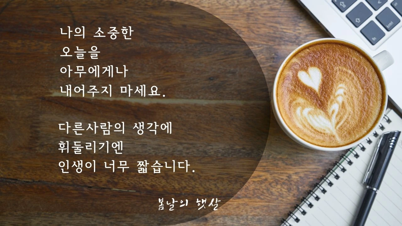 다른사람들의 생각에 휘둘리기엔 내 인생이 너무 짧습니다.