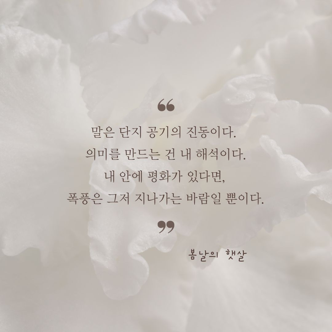 하지만 내 안에 평화가 있으면, 그 모든 소음은 배경음악이 될 뿐이다.