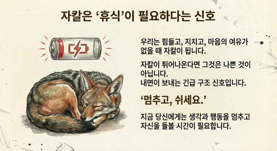 자칼이 튀어나올 때 우리가 해야 할 일은 자책이 아닙니다.