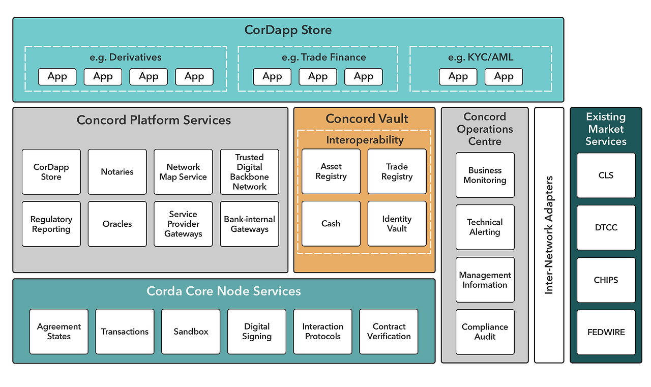 코다 플랫폼은 금융사들이 사용할 수 있는 공동 소프트웨어 플랫폼이라 볼 수 있다. 여기서 공동 소프트웨어란, 같은 분산원장 네트워크 안에서 공동으로 처리되는 기능들을 뜻한다. 즉, 현재 각 금융사가 분리된 상태로 운영하는 금융업무에 가장 기본적인 기능들인 자산(현금 및 증권 등 다양한 자산)의 발행과 기록, 고객 인증정보, 타임스탬핑, 규제 리포팅, 오라클(레퍼런스 데이터) 등의 하위 레벨 기능들이 네트워크 참여자들 간 공동으로 처리되는 소프트웨어다. 새로운 형태의 코어뱅킹이라고 봐도 될 것 같다.