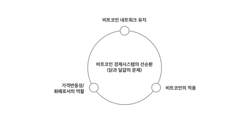 1) 비트코인 경제시스템의 유지 : 비트코인을 비롯한 암호화폐의 경제시스템이 어떻게 지속될 수 있는가. 즉 위에서 언급한 블록보상의 반감기를 상쇄시킬 만큼의 트랜잭션이 일어나고, 그 수수료로 네트워크가 안전하게 유지되는 선순환이 어떻게 일어날 수 있는가.
