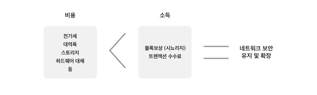 비트코인의 경제시스템은 아주 간단하다. 네트워크를 유지하는 채굴자들이 돈을 벌지 못하면 네트워크가 유지되지 않는다. 즉 채굴자들이 버는 소득 (블록보상, 트랜잭션 수수료)이 채굴을 하기 위한 비용 (전기세, 대역폭, 스토리지, 하드웨어 등) 보다 커야 비트코인을 비롯한 암호화폐가 구동될 수 있다.