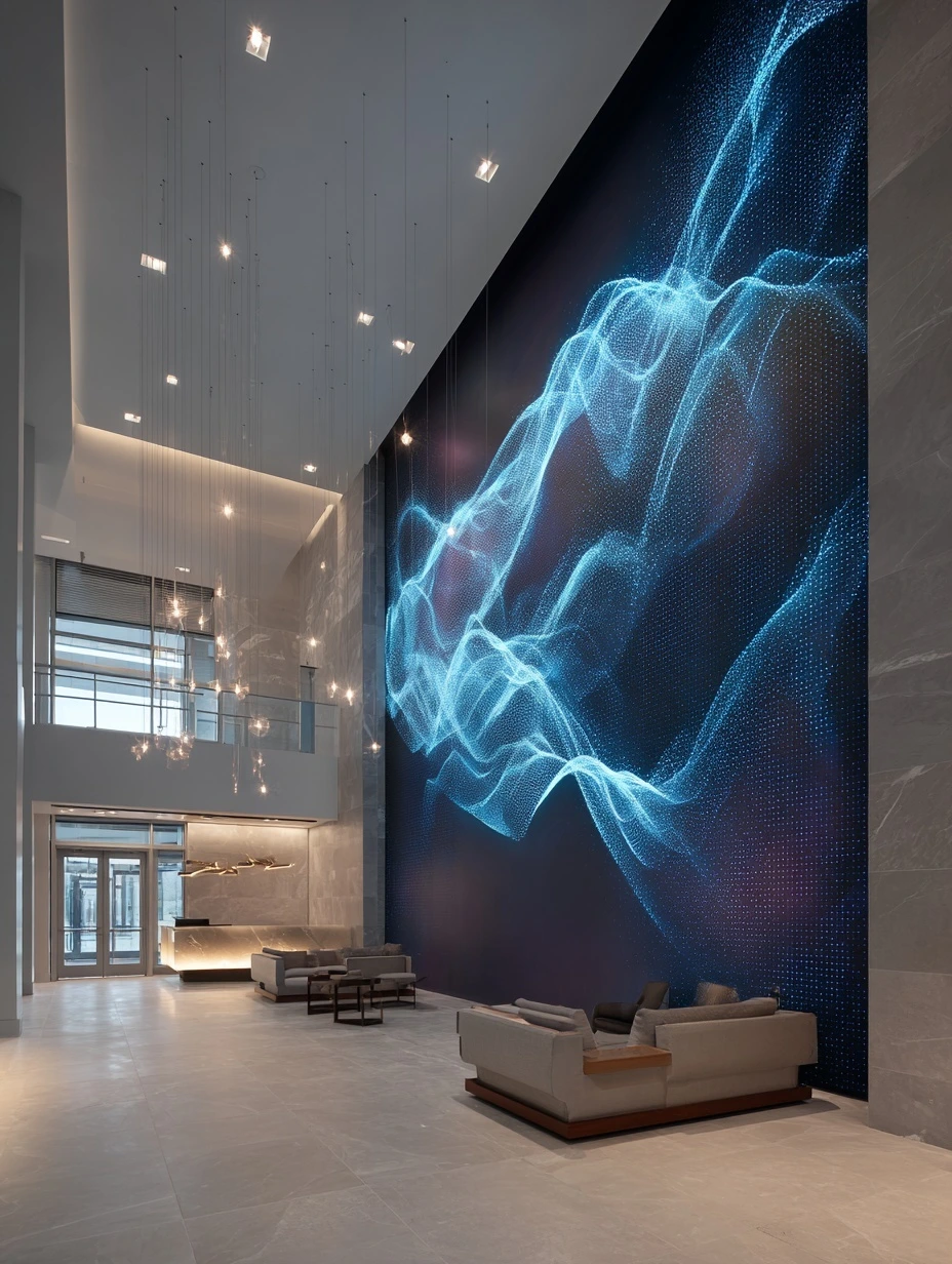 양자 미학(Quantum Aesthetics)은 소립자 수준에서 발생하는 중첩, 얽힘, 파동-입자 이중성과 같은 기묘한 물리 현상들을 디자인 언어로 번역하여 적용하는 시도이다. 이는 전통적인 디자인이 추구하던 일관된 테마나 고정된 비례 체계에서 벗어나, 역설과 모순을 포용하는 대담한 시도를 장려한다. 예를 들어, 양자 미학의 관점에서 공간은 '중첩(Superposition)'의 원리에 따라 서로 상반되는 스타일과 소재가 공존하며, 관찰자의 시점과 행위에 따라 그 성격이 시시각각 변화하는 유동적인 상태를 유지한다. 이러한 철학적 토대 위에서 실내건축은 이제 보이지 않는 에너지의 영향력과 사용자의 지각적 변화를 설계의 핵심 변수로 다루기 시작했다.