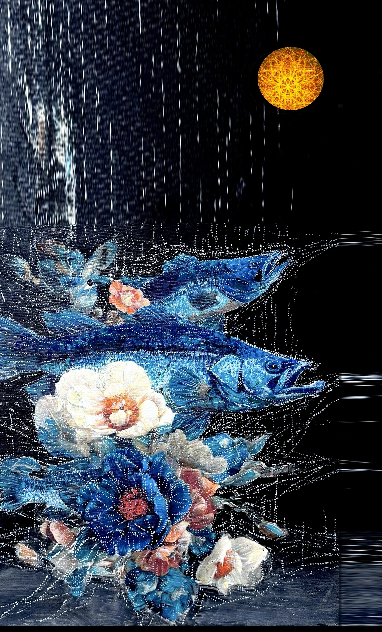 파동의 요소를 시각화하기 위해, 작가는 마치 자수 공예에서 실을 한 땀 뜨는 듯한 시각적 요소와 터치감을 활용했다. 이러한 섬유 예술적인 질감과 깊이는 빛의 흐름과 파동을 은유적으로 표현하는 아날로그적 접근법을 제시한다. 이는 디지털 미디어의 평면적인 픽셀이 아닌, 물리적인 텍스처와 깊이를 통해 야간 조명 시 은은한 입체감을 형성하고, 과도한 휘도를 방지하는 구조적 이점을 제공한다.