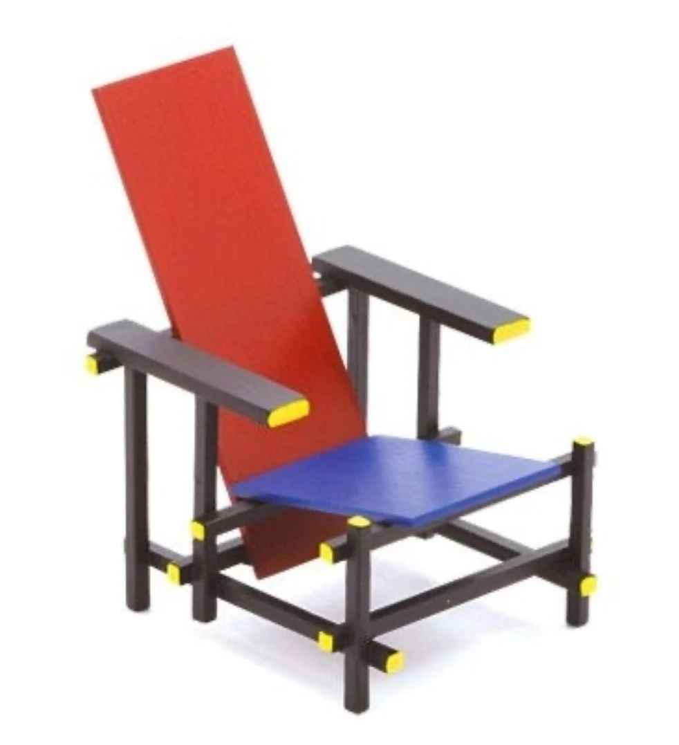 '레드블루 의자'는 안락의자를 포기하고, 새로운 모더니즘 디자인의 선언문이다. 당시의 귀족적인 가구 제작 방식을 거부하고, 대량생산과 조립의 용이성을 염두에 두었다. 새로운 직각 결합 방식은 가구가 부유층의 전유물이 아닌, 모든 시민을 위한 보편적인 오브제가 되어야 한다는 저의 신념을 반영이다.