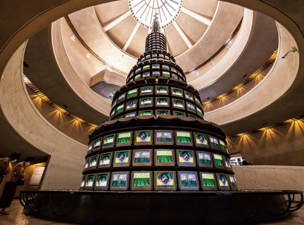 이 거대한 '다다익선'을 완성하고 나니, 내 예술적 여정의 정점을 찍은 듯한 기분이다. 1988년 서울 올림픽을 기념하여 국립현대미술관의 중앙 램프 공간에 우뚝 세운 이 작품은 종래 조형물이 아니라, 내가 평생을 걸고 추구해 온 미디어아트의 철학, 동양과 서양, 전통과 미래를 엮어낸 거대한 텔레비전 탑이다.