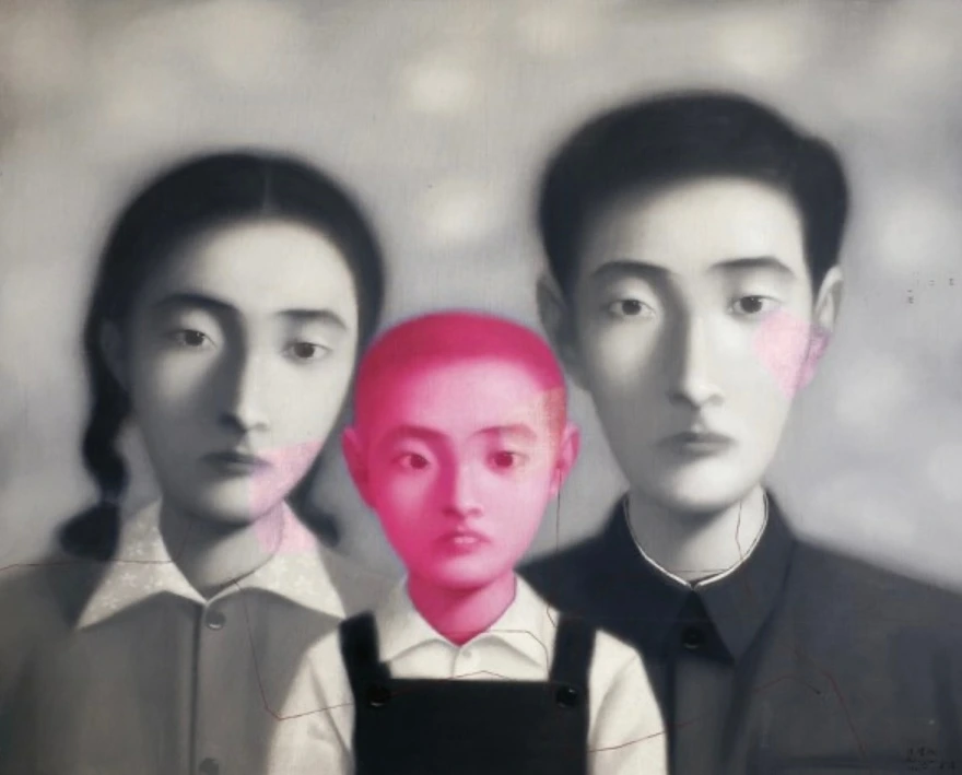 장샤오강의 'Bloodline: Big Family' 시리즈는 1990년대부터 시작된 유명한 회화 연작으로, 낡은 가족사진에서 영감을 얻어 중국 현대사의 아픔을 표현하였다. 이 작품들은 인민복을 입은 가족들이 무표정한 얼굴로 정면을 응시하는 모습을 통해 경직되고 고통스러운 역사적 기억과 개인의 내면적 상처를 상징적으로 보여준다. 이 시리즈는 예술성을 높이 인정받아 높은 경매가에 낙찰되기도 했으며, 조각 작품으로도 제작되었다.