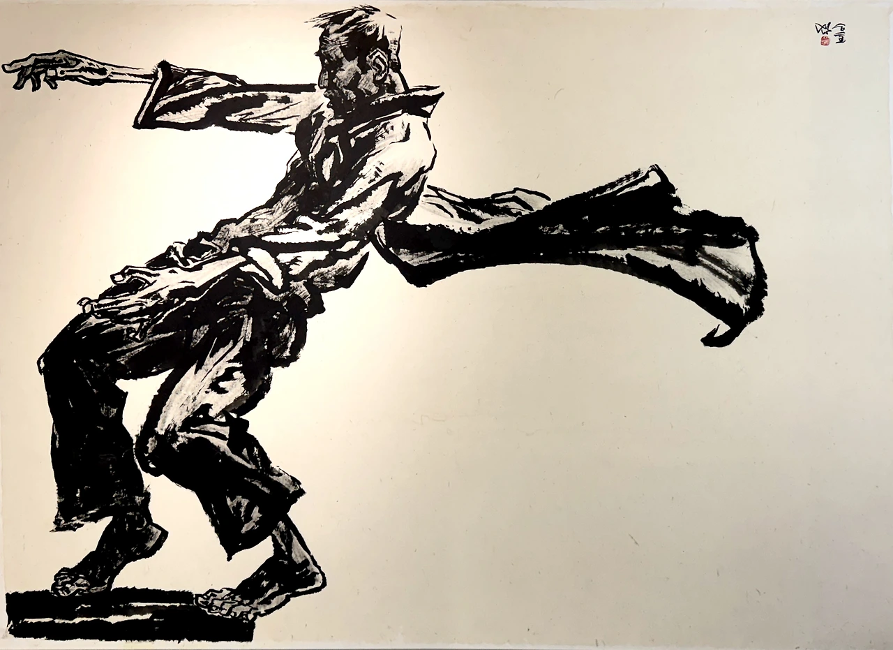 박순철(1963-)은 수묵화의 전통적 기법을 현대적으로 재해석하며, 인물의 내면과 감정, 움직임을 강렬하게 표현하는 작가로 알려져 있다. 옷자락이 바람에 휘날리 듯한 표현은 시간의 흐름, 혹은 감정의 격동을 암시하고, 거칠고 힘 있는 붓터치는 인물의 강인함과 생동감을 강조하며, 박순철 작가 특유의 강단 있는 화력이 느껴진다.