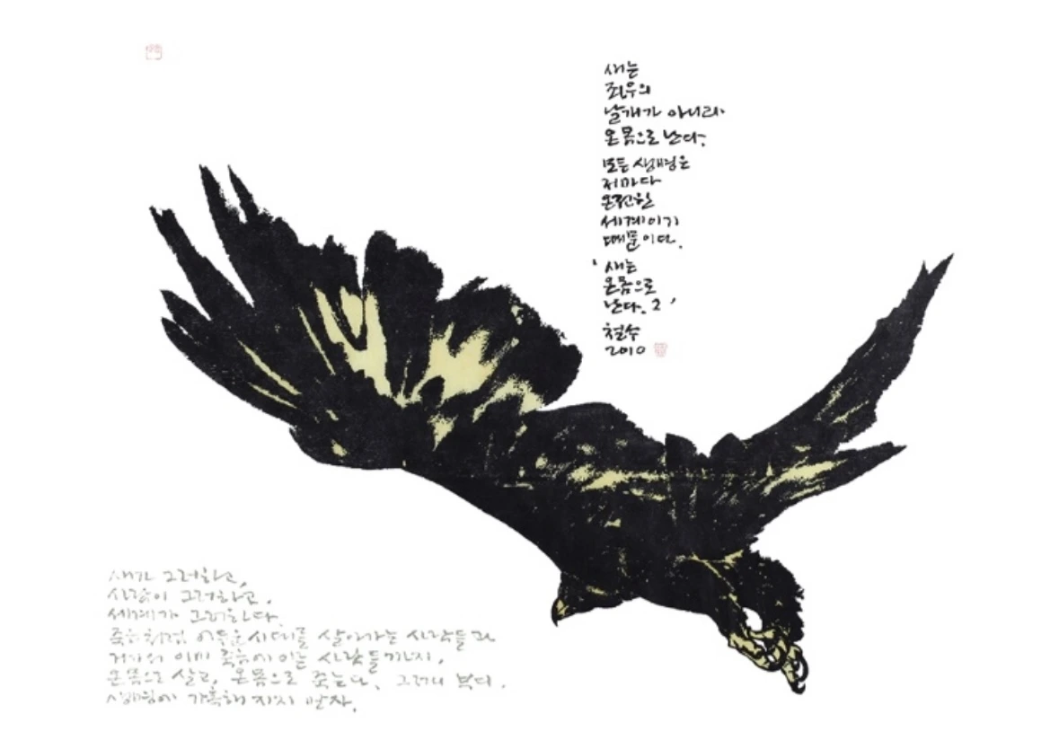 이철수(1954~ )는 대한민국의 대표적인 목판화가로, 1980년대 민중미술을 대표하는 작가로 활동을 시작했으며, 초기에는 시대 현실을 비판하는 민중예술가로서의 면모가 강했으나, 이후 충북 제천으로 귀촌하여 농사를 지으며 자연과 일상의 소중함, 선(禪) 사상에 기반한 평화와 생명에 관한 주제를 주로 다룬다. 판화 그림과 함께 작가 특유의 함축적인 글귀가 조화를 이루어 '판화로 시를 쓴다'는 평가를 받는다.