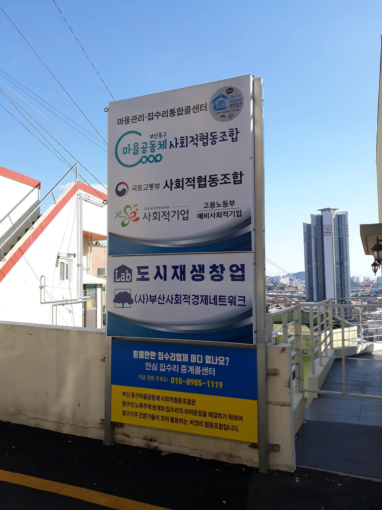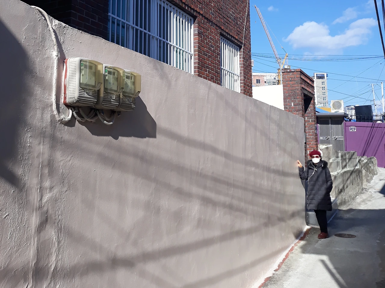 망양로로 올라선다. 옥상을 주차장으로 이용한다. 태양광 발전설비를 설치한 집도 여러 채가 보인다. 도로가 넓어지니 지나온 좁은 골목의 동네보다 도시재생에 관심이 많은가 보다. 노후주택 문제와 집수리의 어려움을 해결하기 위하여 동구에 거주하는 전문가들이 모여 '비영리법인 마을 공동체 사회적 협동조합'을 만들어 활동하고 있다. 깨끗하게 리모델링된 집이 보이고, 공사가 진행 중인 집도 제법 있다.