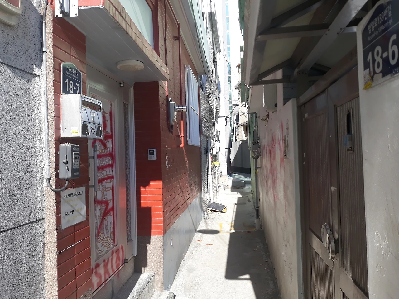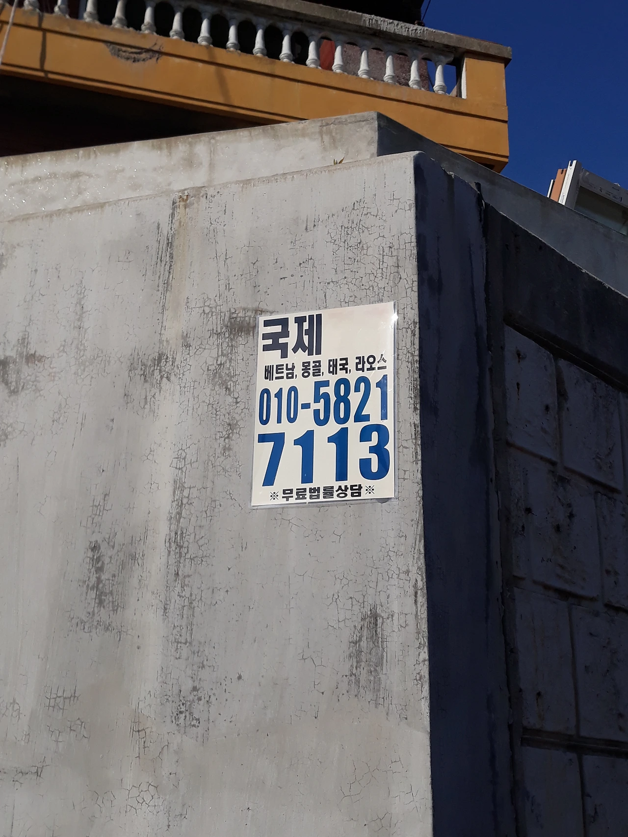싸운 다음날 함께 손잡고 학교 가던 길이다. 골목은 거미줄 같이 엉켜 있어 미로다. 오늘은 새로 난 길을 놓아두고 학교 가던 좁은 옛길을 선택한다. 요즘 이 동네에 외국인 노동자들이 많이 사는가 보다. '국제 무료법률상담' 안내 쪽지가 담벼락에 붙어 있다.