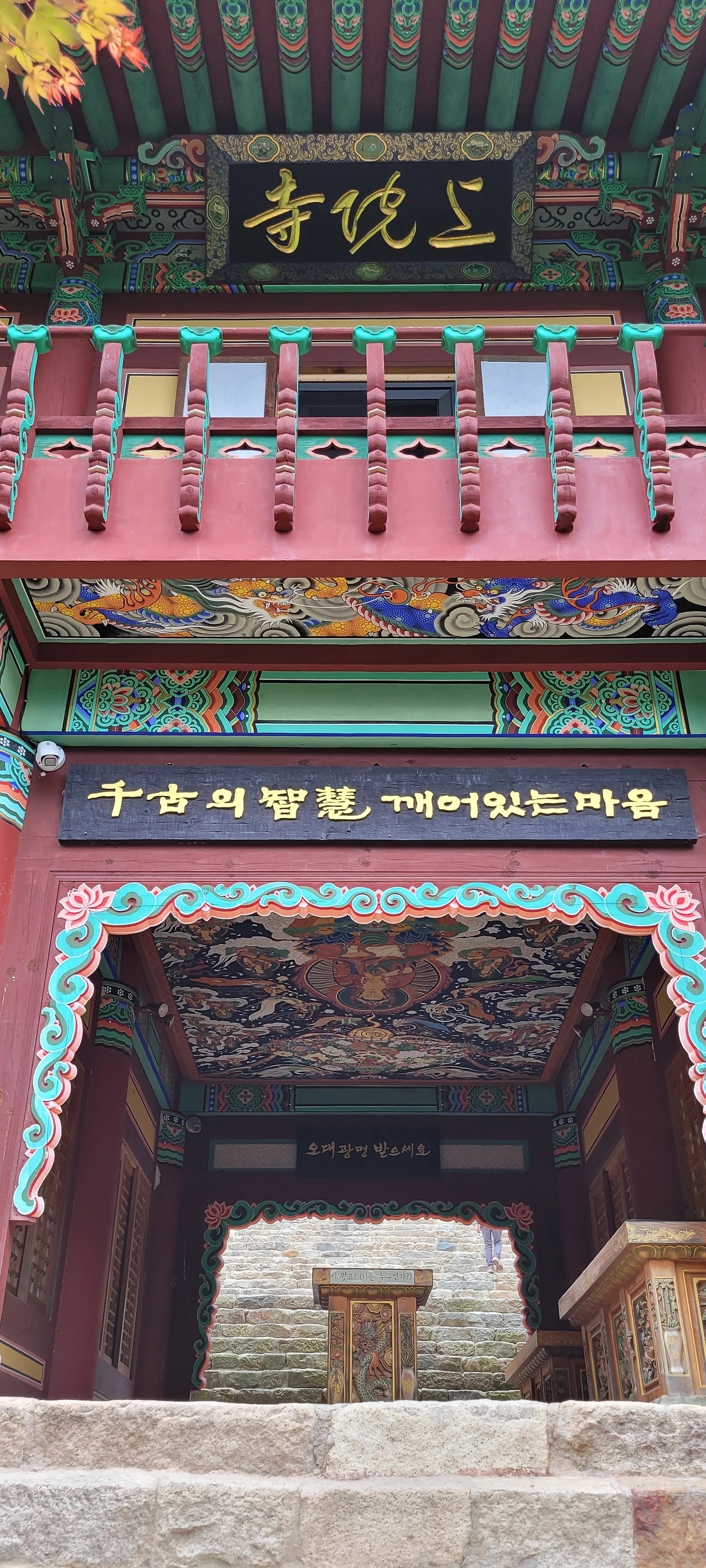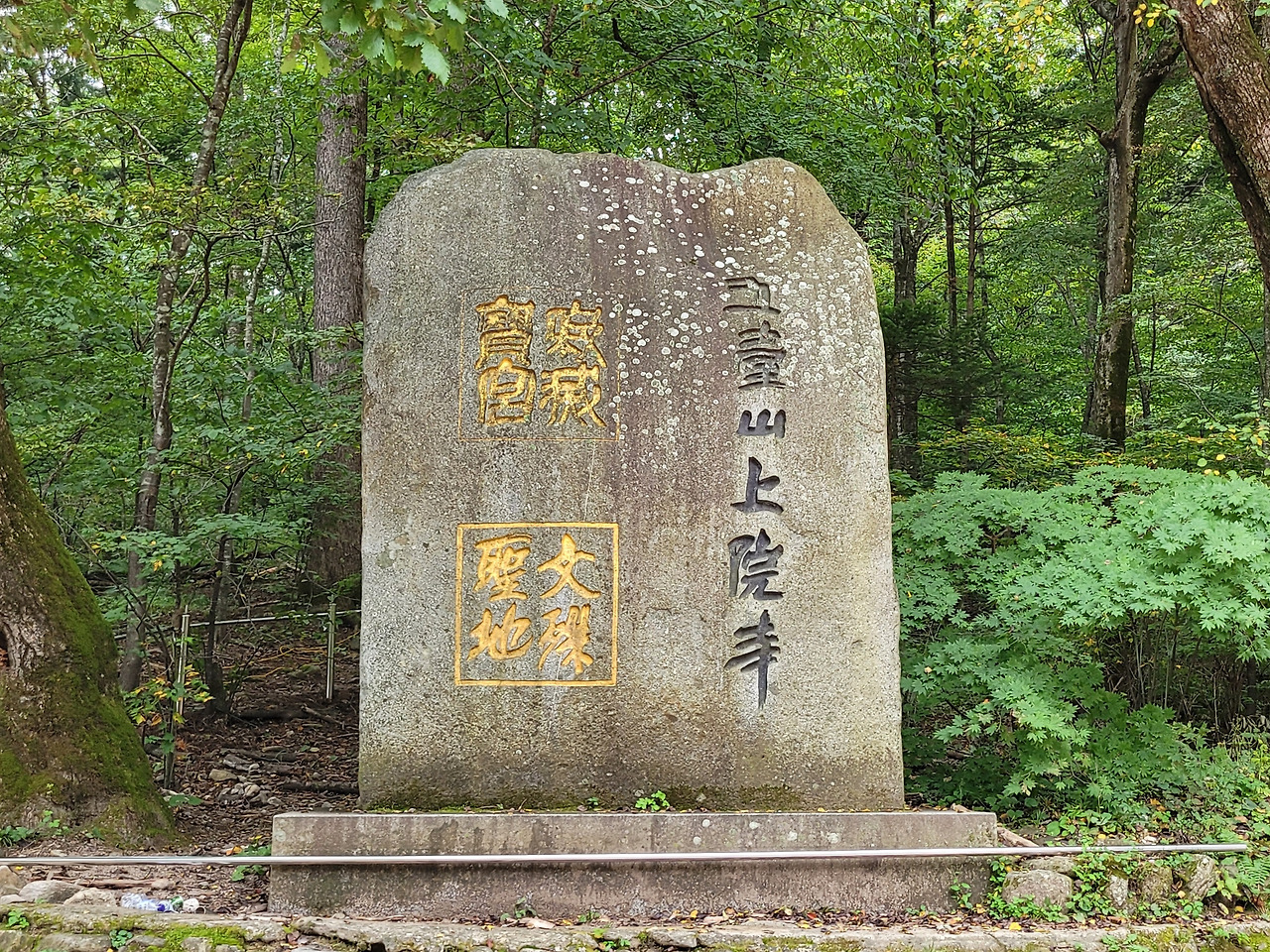 숲길을 지나면 가파른 계단이 나온다. 예술적 감각이 없는 필자가 봐도 범상치 않은 필치로 쓴 '상원사' 현판 아래,