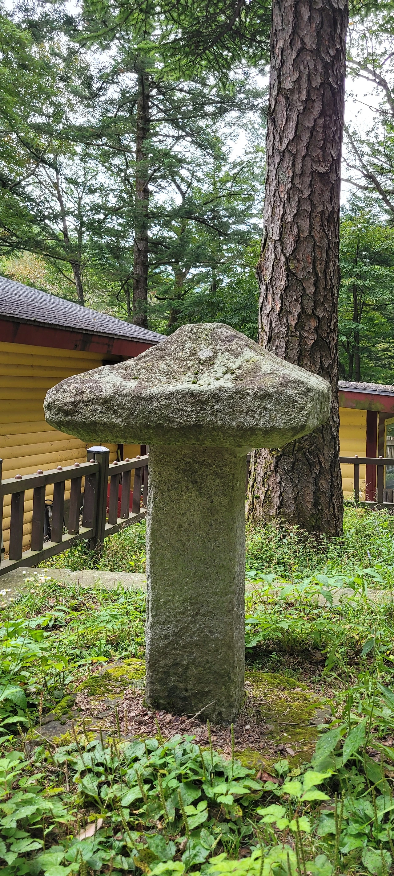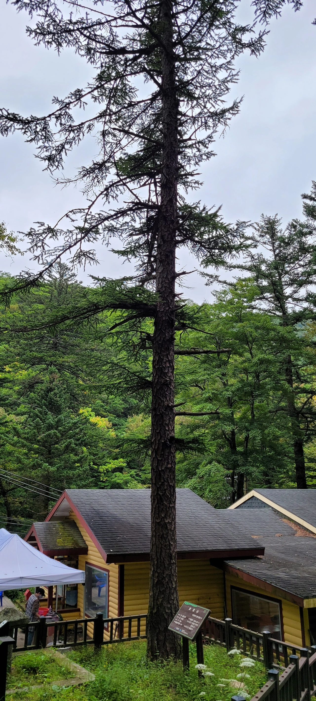 관대걸이(좌) / 수령 250여 년, 수고 14 m, 가슴 높이 지름이 4 m인 잎갈나무(우)