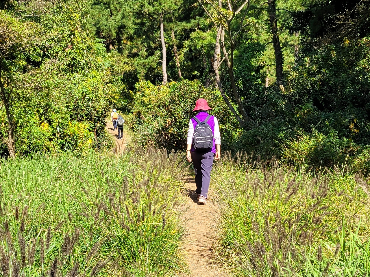 화구벽을 따라 평탄한 능선길이 5, 6백 m 이어진다. 초지에 강아지풀을 닮은 길갱이(수크링)가 바람에 흔들리고 있다. '가을의 향연'을 펼치는 갈색 길갱이 사이로 가을은 깊어 가고 있다. 우리는 여유롭게 능선을 걷는다.