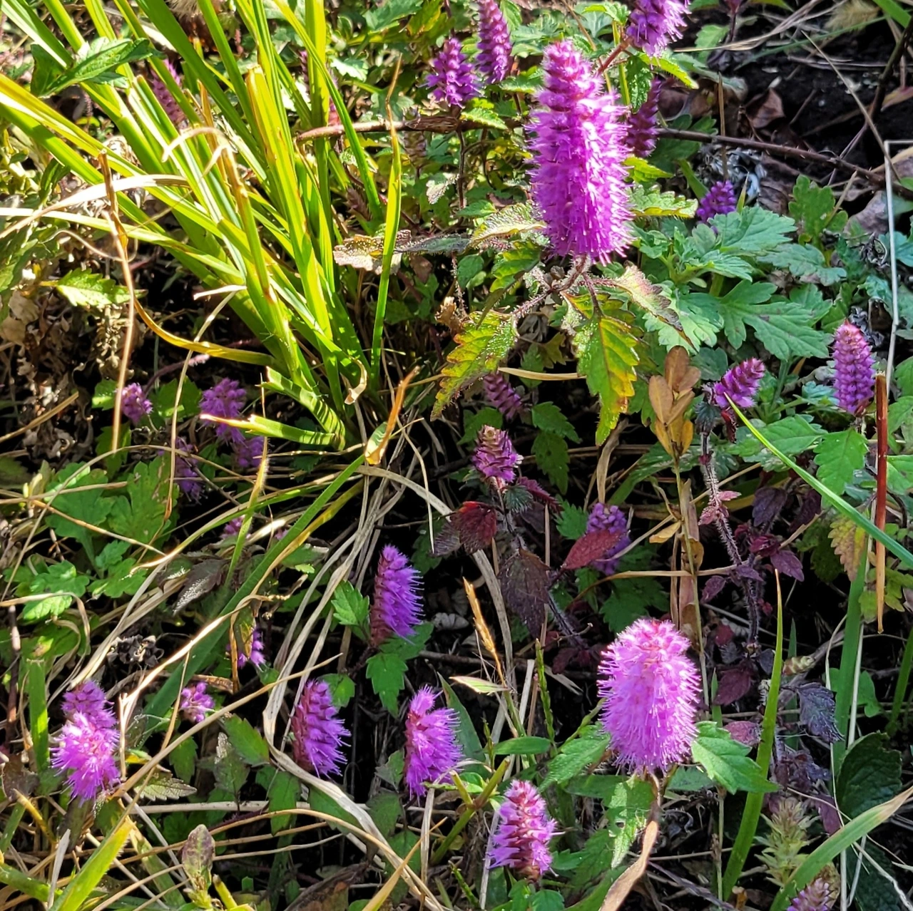 습지에 핀 들꽃. 말미오름을 내려와 알오름을 오르는 사이에 습지를 지난다. 물은 보이지 않고 '가을 향기'를 물씬 풍기는 꿀풀과의 한해살이풀 꽃향유와 '겸양'을 미덕으로 여기는 제비꽃이 보라색 천지를 만들어 놓았다.