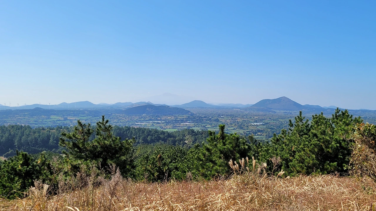 알오름 정상을 내려서서 띠가 하늘거리는 사잇길을 지나간다. 솔밭에 닿는가 했더니 이내 무밭, 당근밭, 감자밭이 펼쳐진다. 사실 이 지역은 말미오름의 화구원(중앙 화구와 외륜산 사이에 있는 평평한 땅)이다. 종달리 쪽에서 올라오면 경사가 완만하고 알오름만 도드라질 뿐 전혀 오름이라 느끼지 못하고 밭을 지나간다.