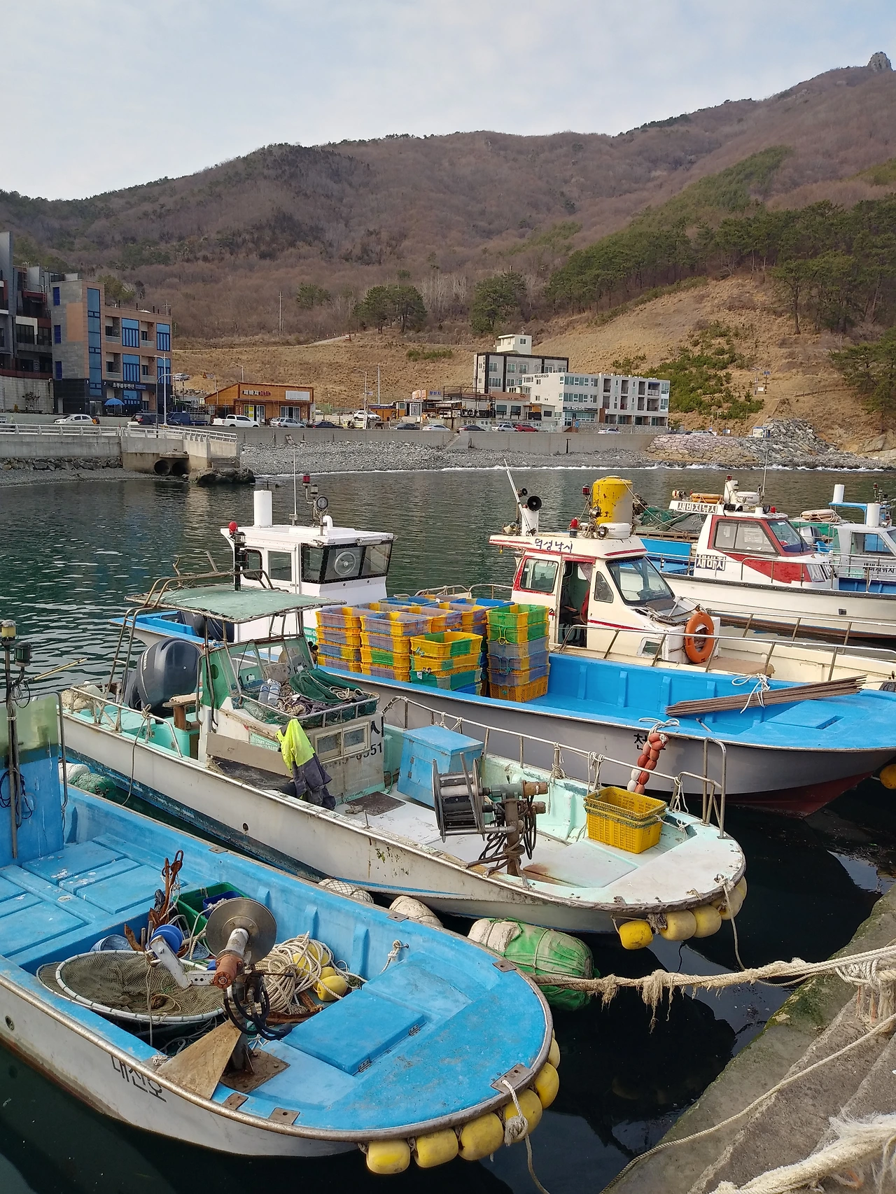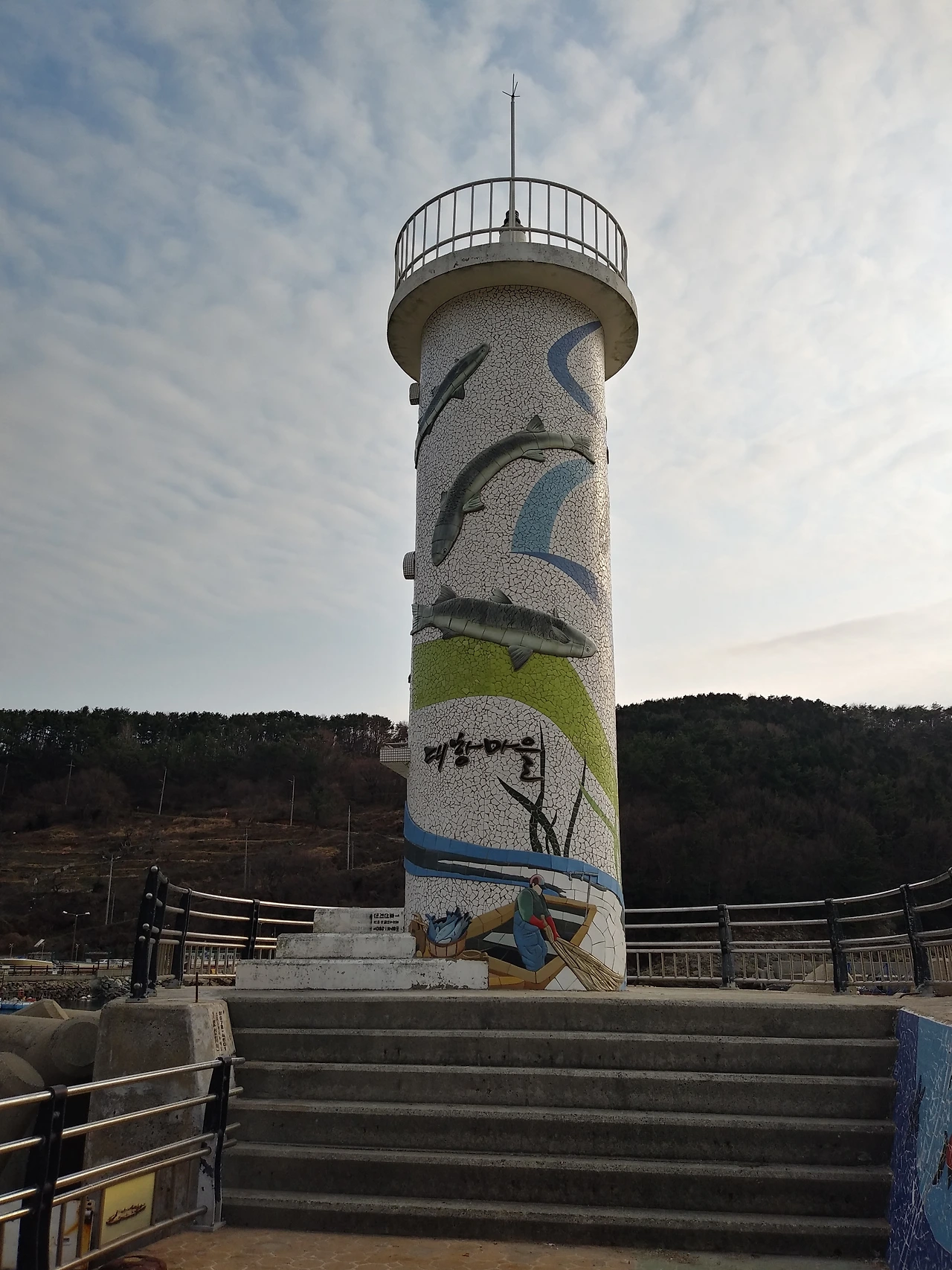어부가 그물을 손질하고 있다. 등대에서 기념촬영을 한다. 방파제에 바닷물이 넘쳐흐르는 듯 한 벽화가 그려져 있고, 그 넘어 갯바위에는 낚시꾼들이 붙어 있다. 이런 평화로운 마을에도 아픈 상처가 남아 있다.