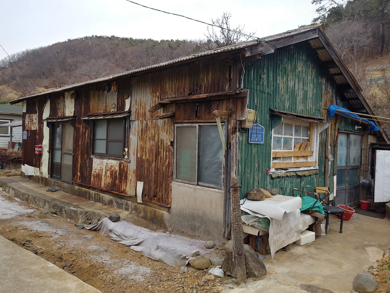 동네로 들어서면 옆으로 길쭉한 건물을 만난다. 누가 봐도 군 막사다. 그런데 여러 가구가 사는 것 같다. 건물 벽 창문가에 키가 달려 있다. 곡식을 까불러 쭉정이나 티끌을 골라내는 도구로 요즘은 보기 힘들다. 아이들이 잠자다 오줌을 싸면 옆집에 소금 얻으러 다니는 벌을 받는데, 이것을 뒤집어쓰고 다녔다.