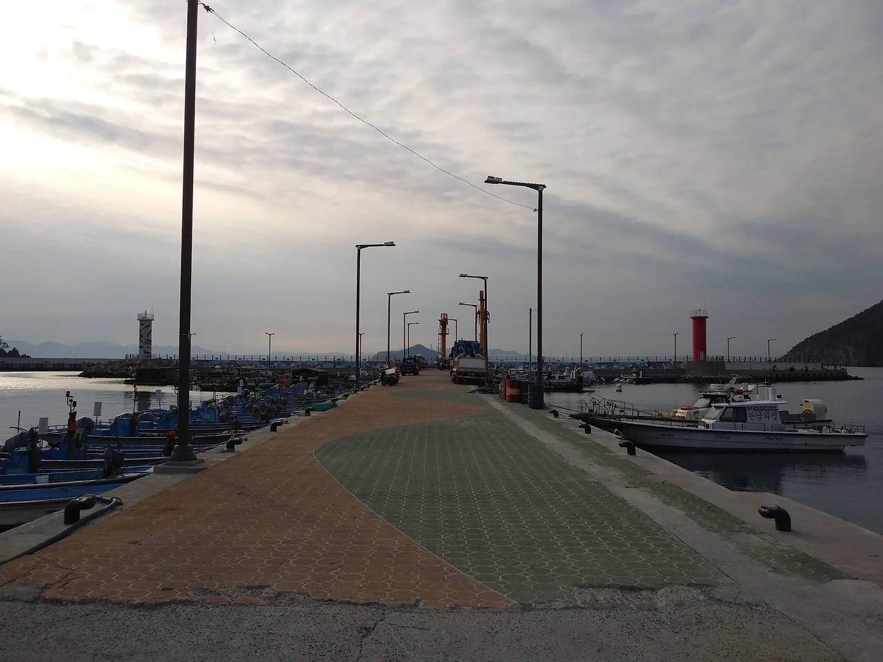 외양포로를 따라가다가 새바지 입구 회전 교차로를 지나고 양포 고개를 넘는다. 이내 화장실을 갖춘 공용주차장이 나온다. '가덕도 관광안내판'과 이정표가 세워져 있다. 산책로와 야생화단지가 조성되어 있다. 우리는 외양포항 선착장까지 내려가서 '대항낚시' 앞에 주차한다.