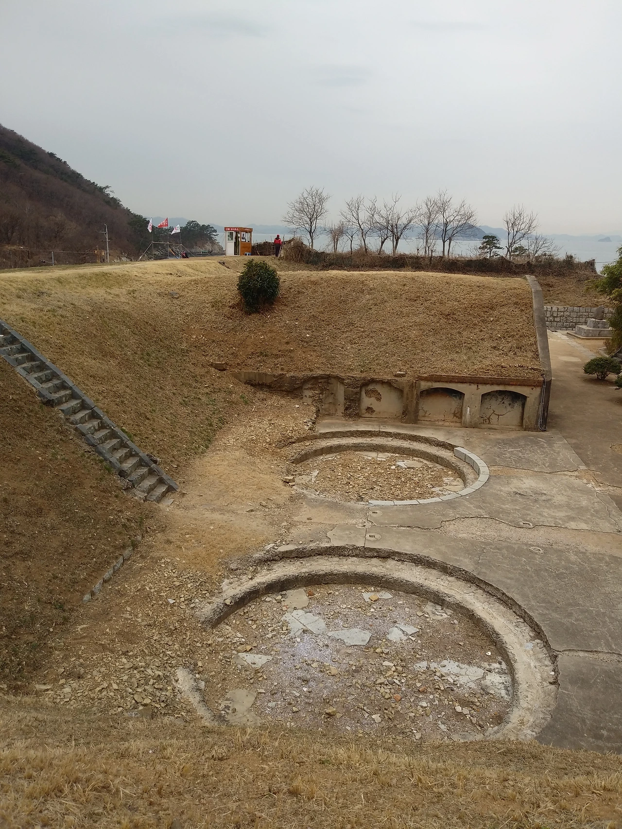 엄폐 막사 앞의 탄약고와 탄약고 사이에 2개씩 포좌를 설치하여 총 6문의 280mm 유탄포를 배치하였다. 막사와 탄약고는 들어가는 입구를 제외한 모든 면을 구릉으로 만들었다. 그 윗부분은 잔디를 깔고 대나무를 심어 은폐ㆍ엄폐하였다. 다시 포진지 입구로 내려오니 당시 병사들이 사용했던 화장실이 남아 있다.