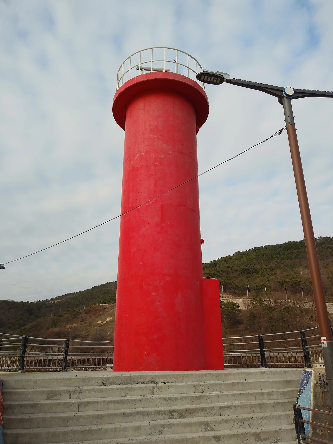 측면에 소형 망대가 있다. 화강석 계단으로 올라간다. 멀리 산 아래 남쪽 바닷가 언덕에 가덕도 등대가 나무 사이로 희미하게 보인다. '가덕도 항로 표지 관리소'다. 구 한말, 마산항의 개항으로 일본과 러시아의 조계지가 설치되고일본군 진해만요새사령부가 들어서니 출입하는 선박들이 늘어난다. 1909년 이곳에 한국, 일본, 유럽의 건축 양식이 함께 어우러진 구조의 등대를 세운다.