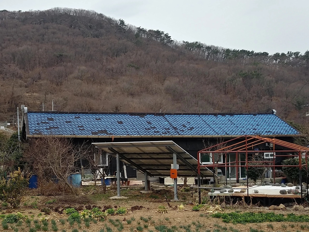 지나다 보면 한 건물인데 지붕이 다른 건물이 많다. 한 지붕 밑에 여러 세대가 살면서, 각자 다른 색깔로 지붕을 개량하여 생긴 기이한 풍경이다. 지붕을 보면 몇 세대가 사는지 알 수 있다. 이 집은 벽면의 색깔도 다르다.