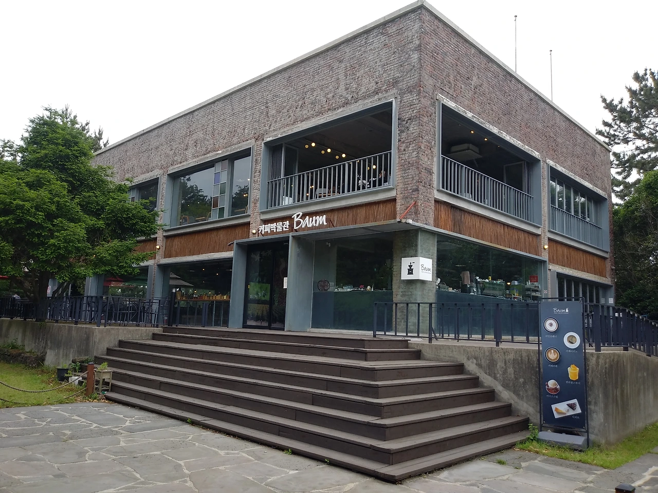 제주 커피 박물관 바움은 빛의 벙커와 한 구내에 있다. 빛의 벙커 관람을 마치고 잠시 쉬어간다. 대수산봉 소나무, 삼나무, 편백나무 숲이 한눈에 보이는 커피 박물관이다. 세계 여러 곳에서 수집한 커피 그라인더와 로스터기, 커피 잔 등 커피 관련 용품들이 전시된 박물관, 커피 체험실, 전망대, 커피숍을 갖추고 있다.