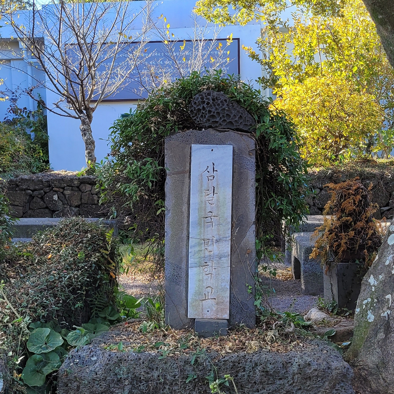 전시관 건물 앞에 과거 삼달국민학교였다는 것을 알리는 표지석이 서 있고, 또 국기 게양대가 부서진 채 학교였던 흔적을 남겨두었다. 학교는 없어졌는데 유공자 송덕비 4기가 담장 밑에 서 있다.