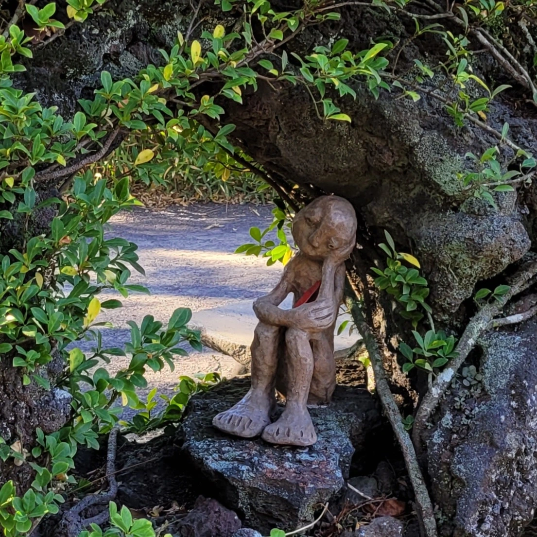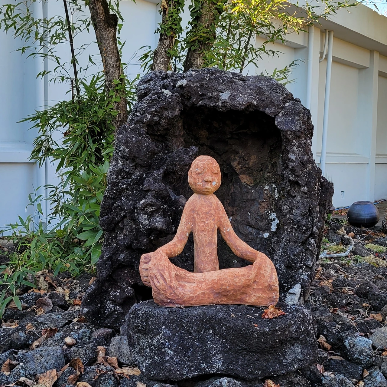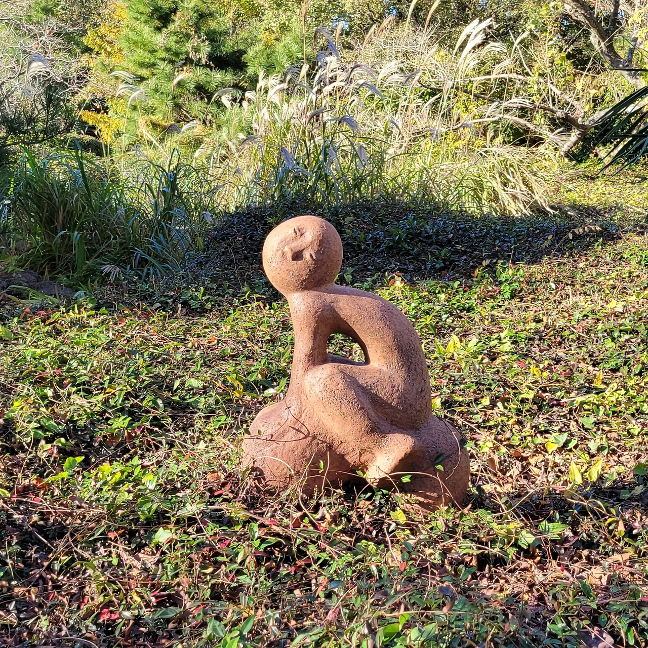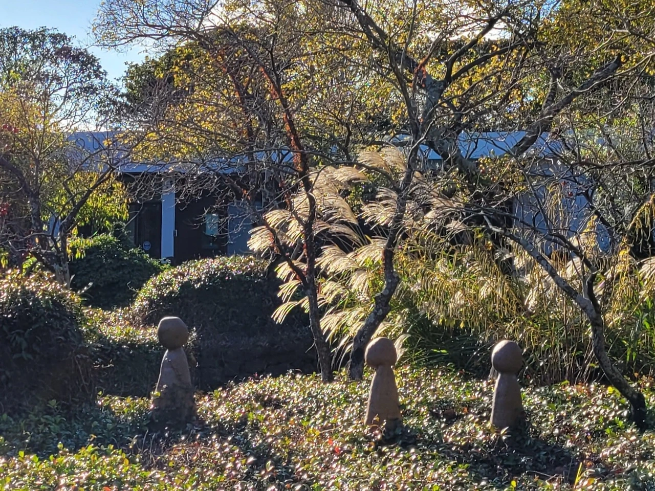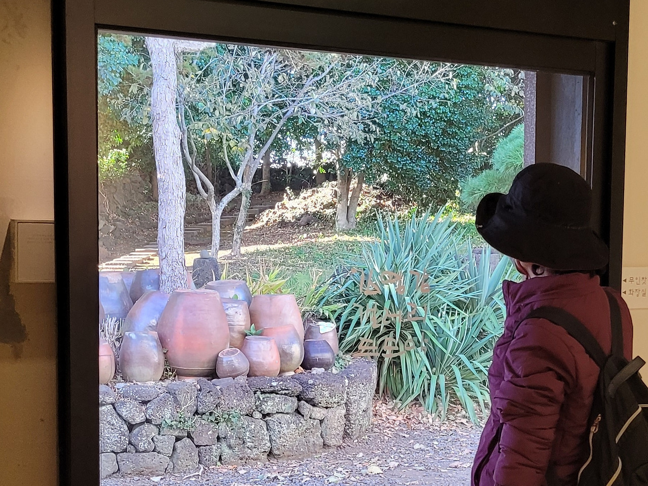 정원에 김영갑의 벗, 김숙자 작가의 토우 조각품이 전시되어 있다.