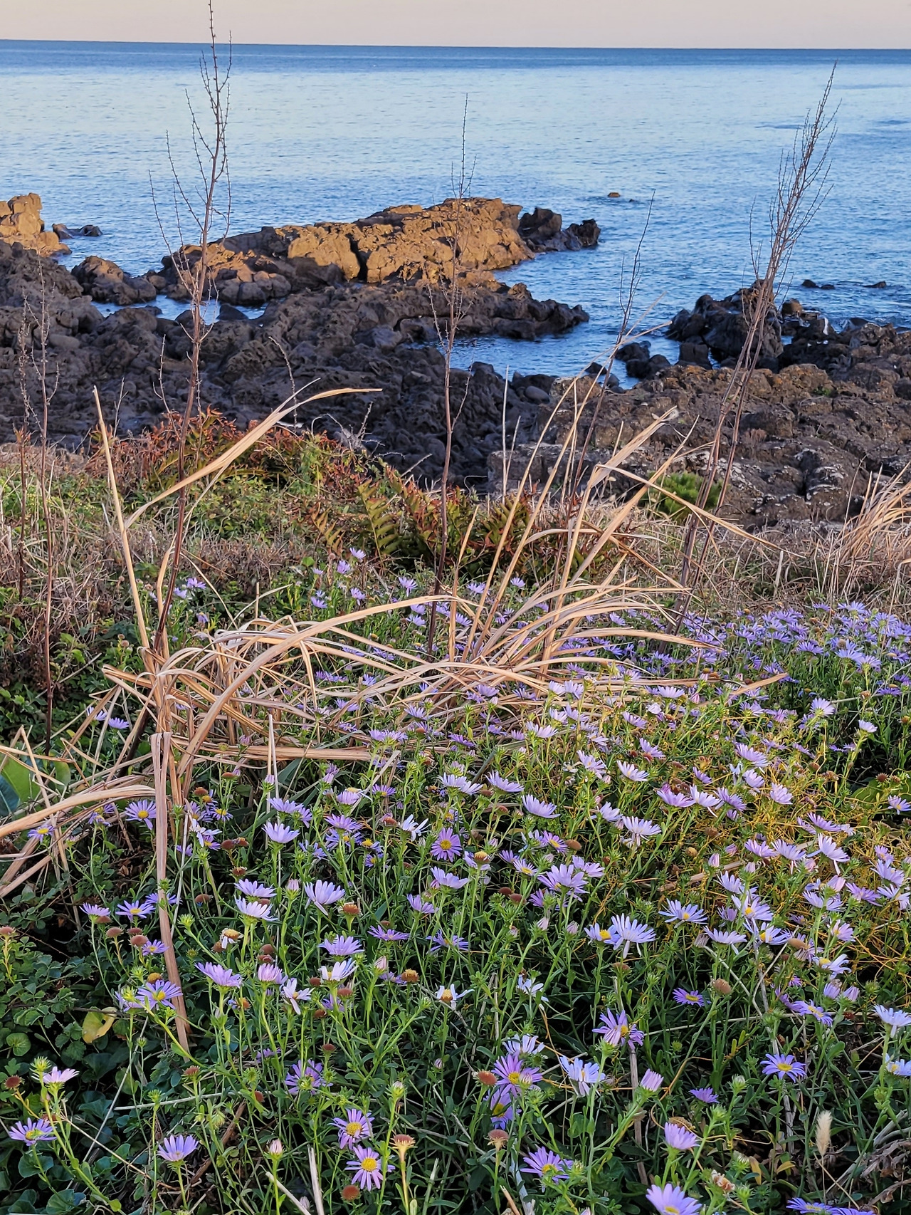 이어지는 양식장으로 따분한 도로가에 현무암 해안의 바다 풍경과 더불어 들꽃들이 소박한 가을잔치를 벌인다.