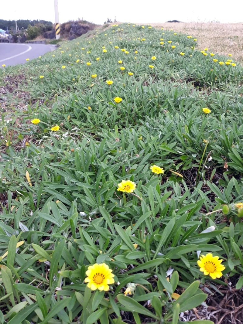 태양국. 남아프리카가 고향인 정열적인 태양국이 노란 꽃을 피우고 올레꾼들의 인사에 '미소로 대답'한다.