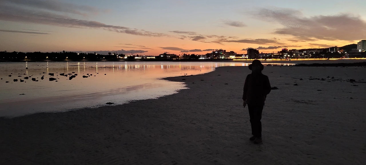 날이 어두워져 더 이상 걷기가 어렵다. 표선리 교차로에서 걷기를 멈추고, 다음 날 다시 올레3코스 종점까지 이어간다. (2022. 11. 5)