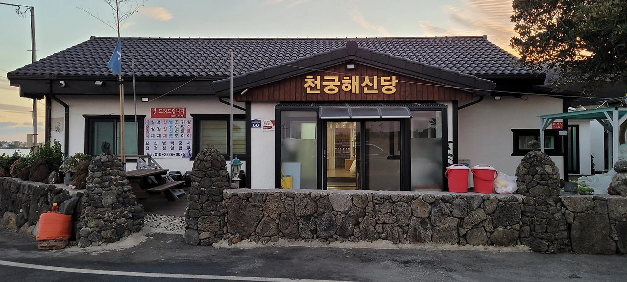배고픈 다리 건너편에 해신당이 보인다. 신당인가 하고 반가운 마음에 얼른 다리를 건넌다. 그런데 뭔가 좀 이상하다. 해신당, 본향 당산, 한국불교 등이 뒤섞여 있다. 자세히 보니 묘점, 신점, 병굿, 신굿도 쓰여 있다. 점집 굿당을 해신당으로 지레짐작했던 우리가 마주 보며 멋쩍은 웃음을 짓는다.